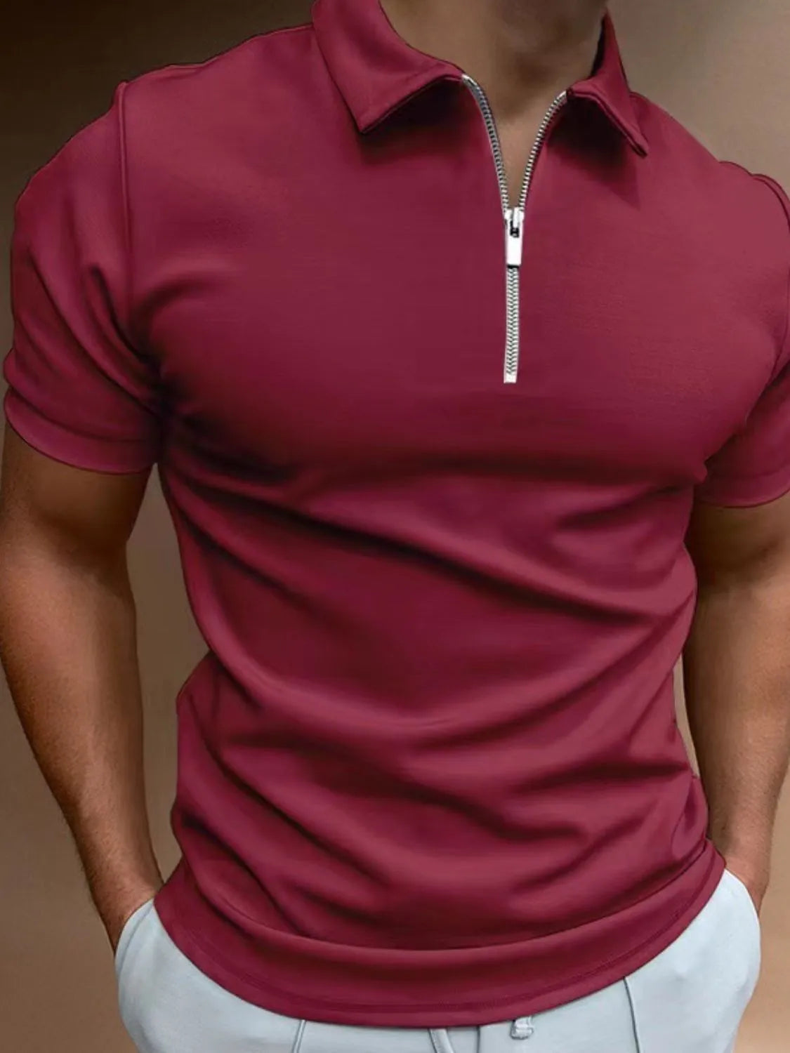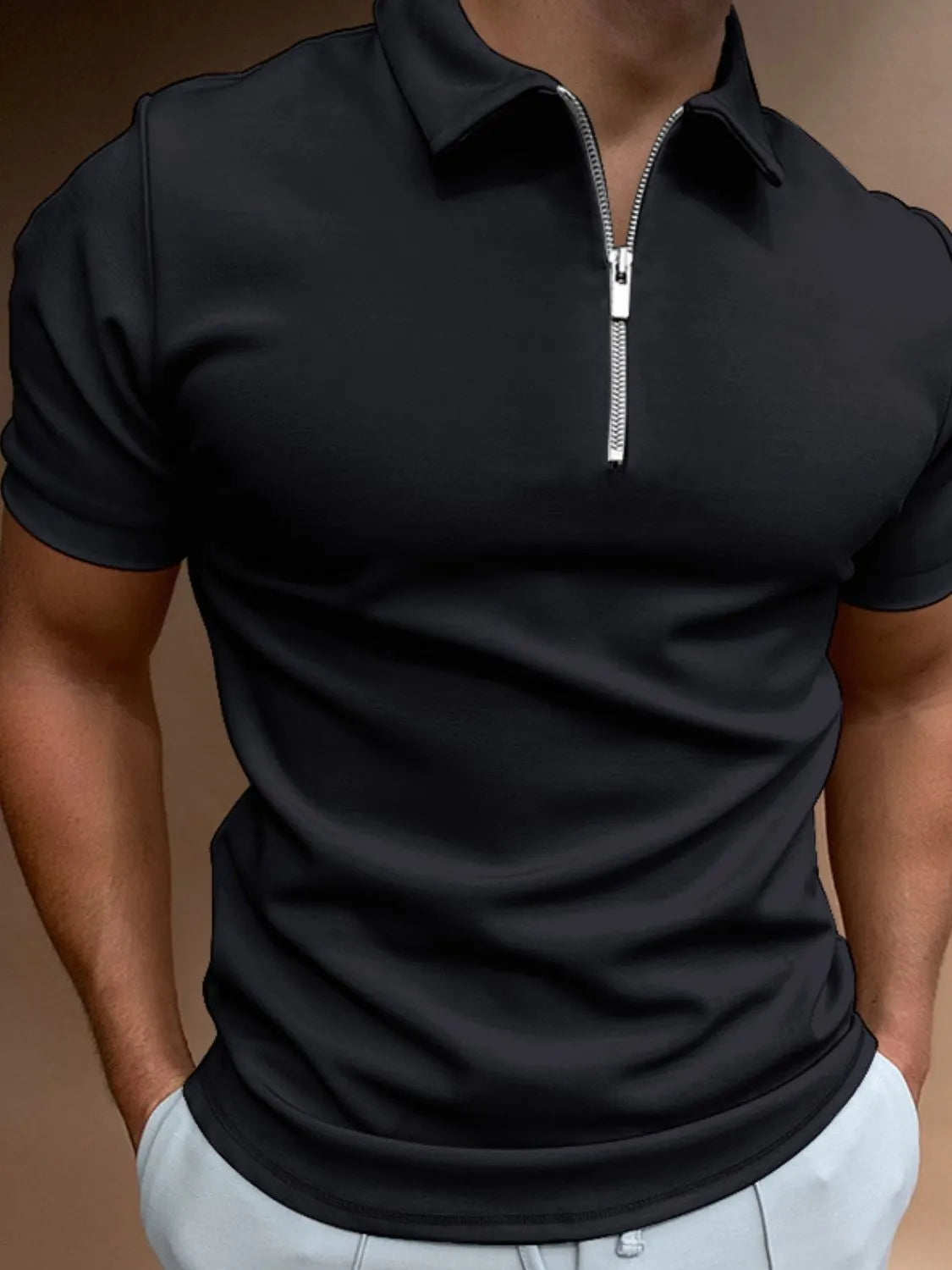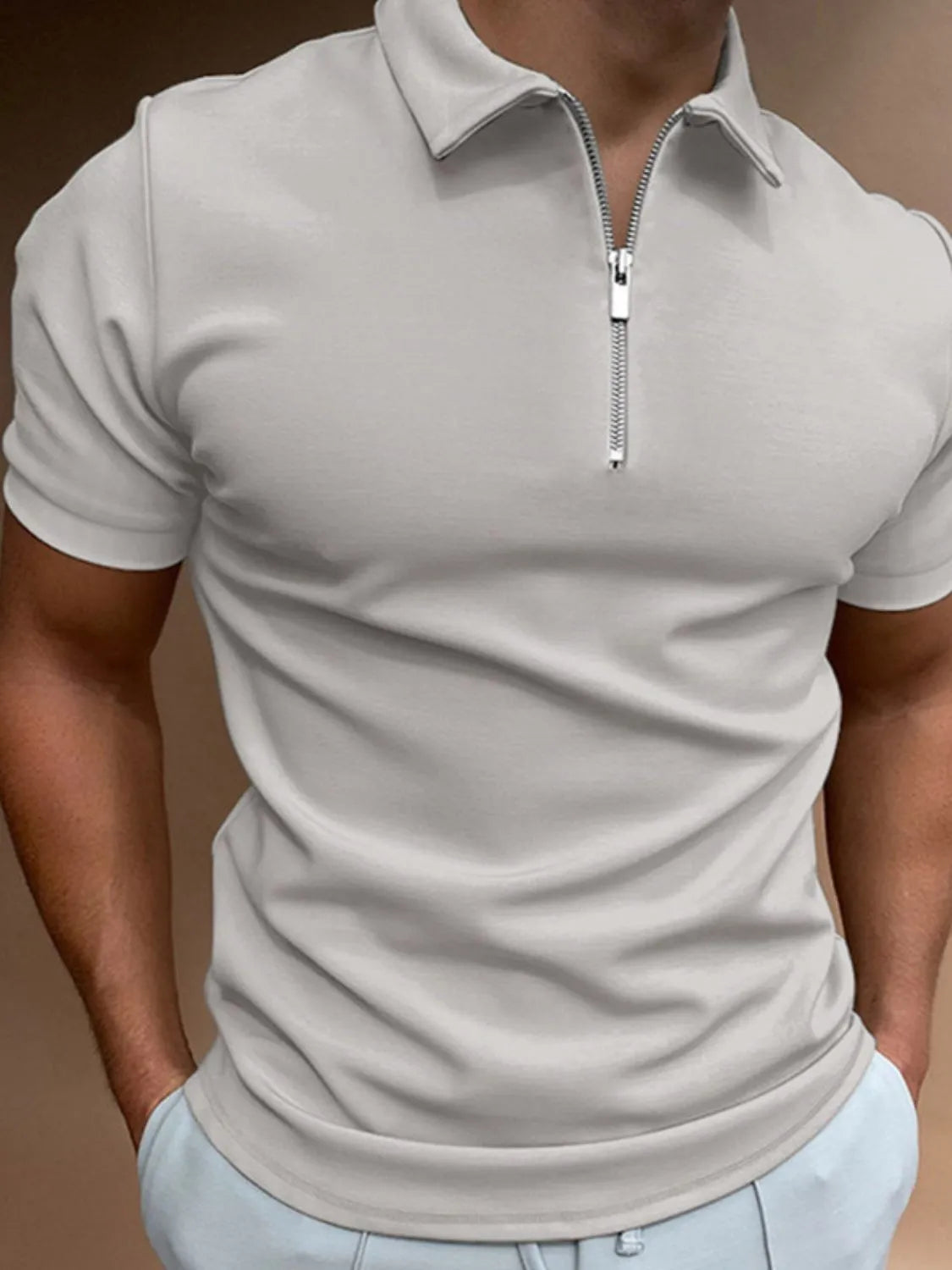Men's Full Size Zip Collar Short Sleeve Polo Plus Size