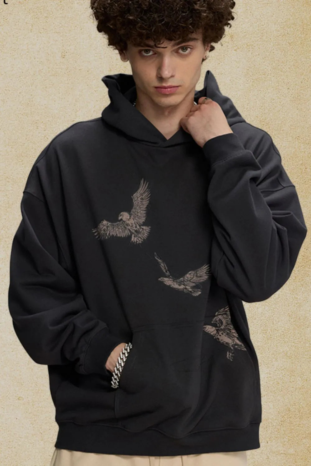 Men's Graphic Long Sleeve Hoodie with Kangaroo Pocket