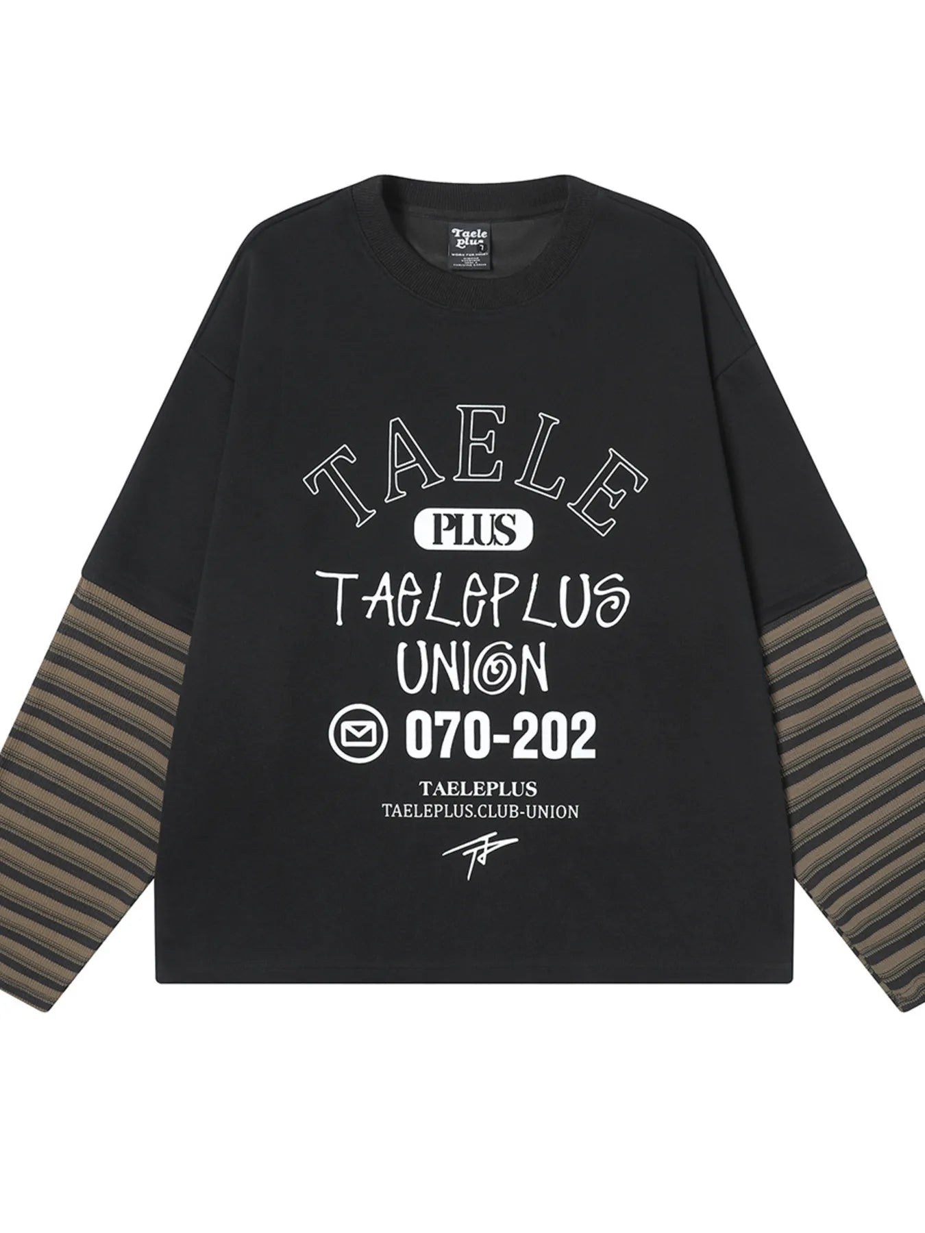 Men's Letter Graphic Striped Long Sleeve T-Shirt