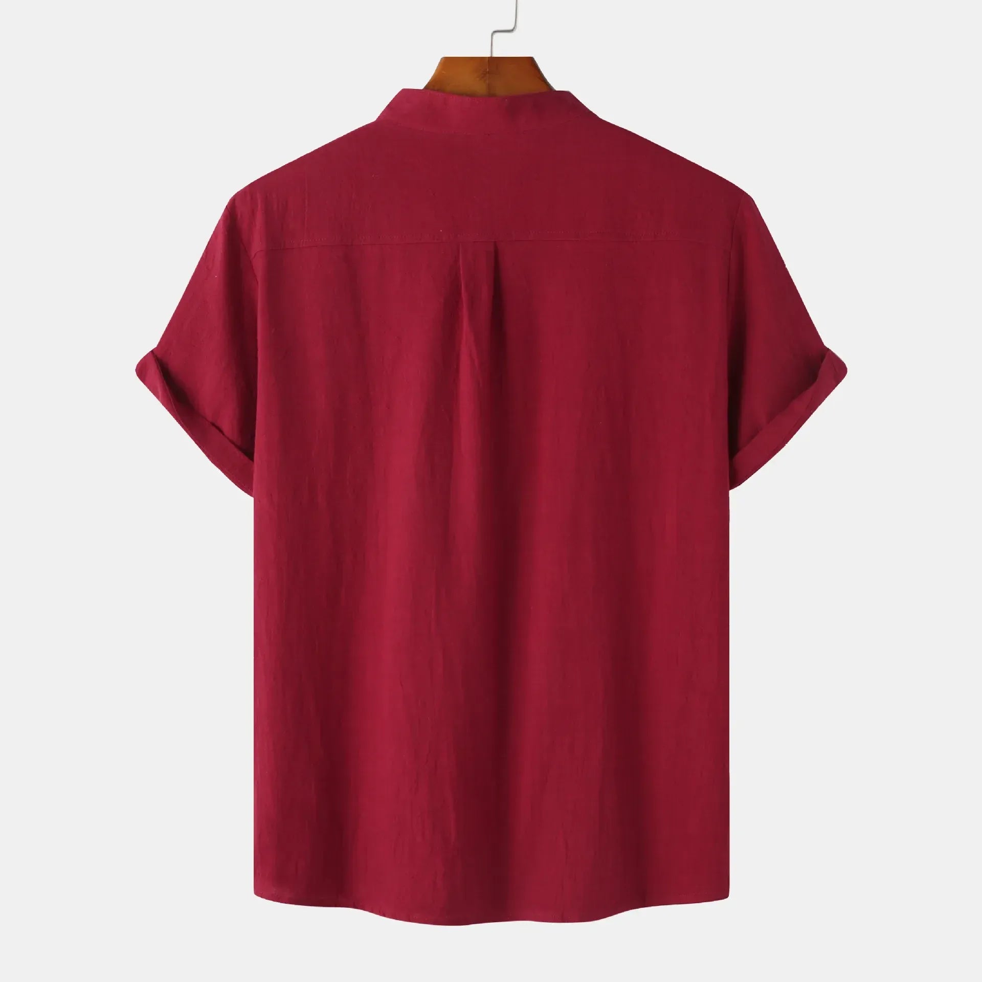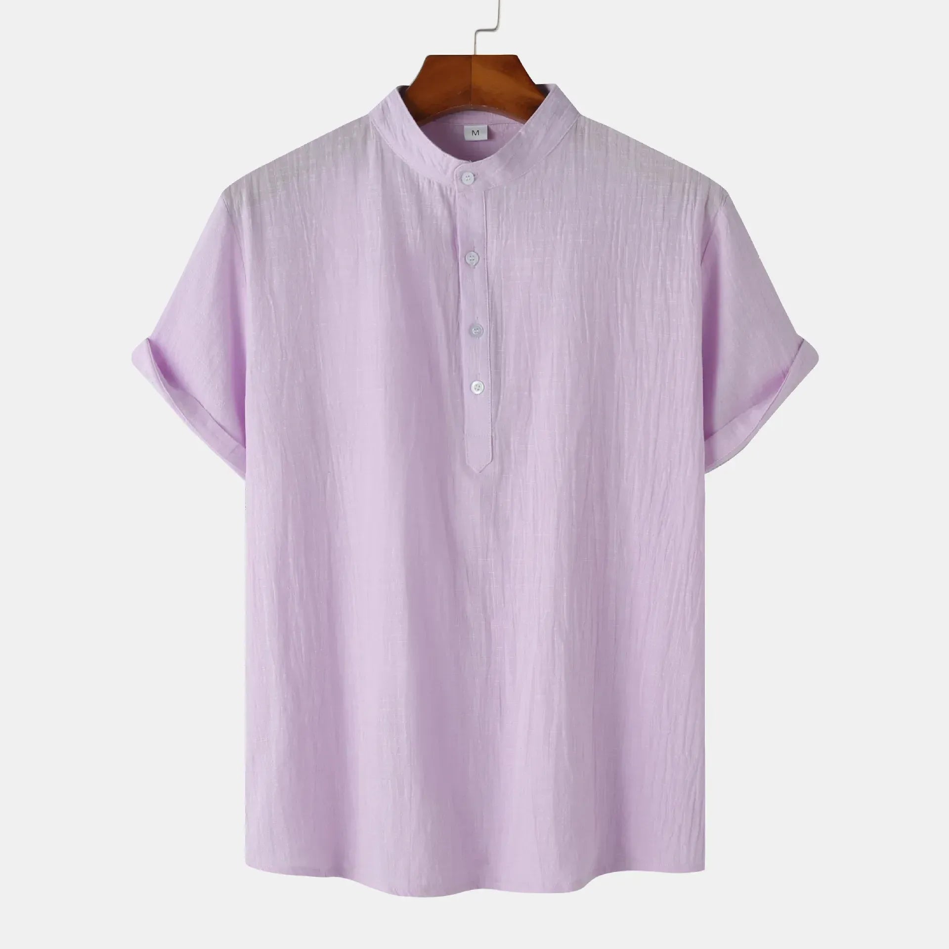 Men's Mandarin Collar Short Sleeve Henley Shirt