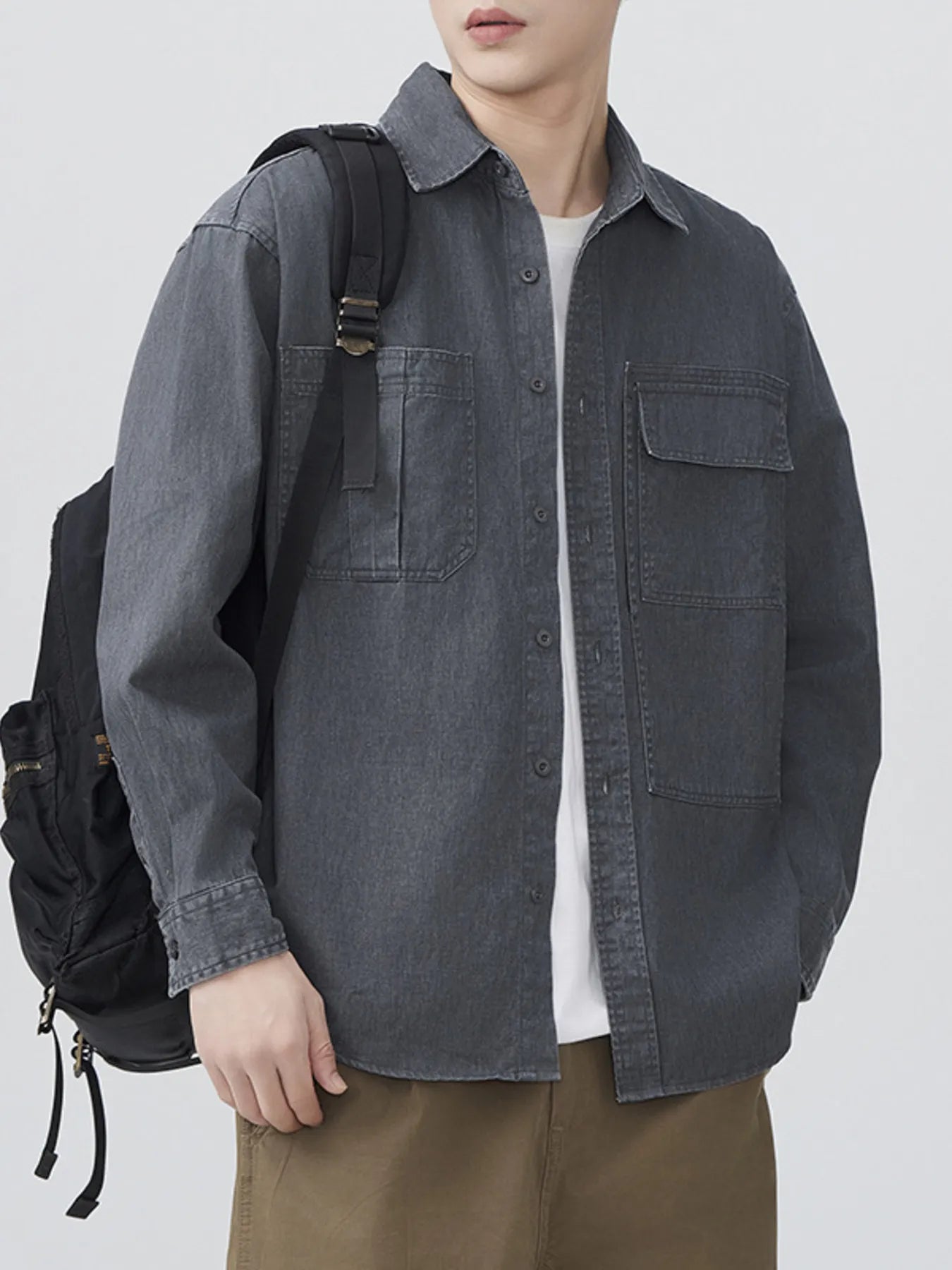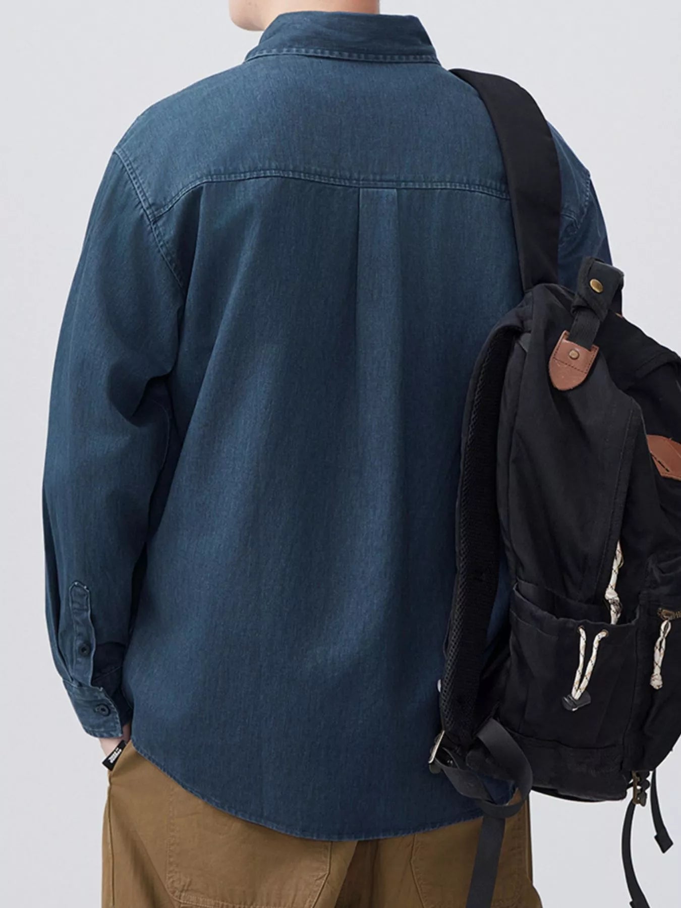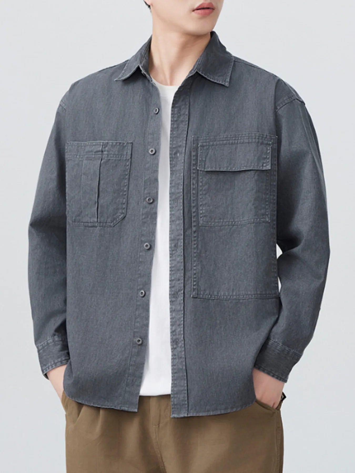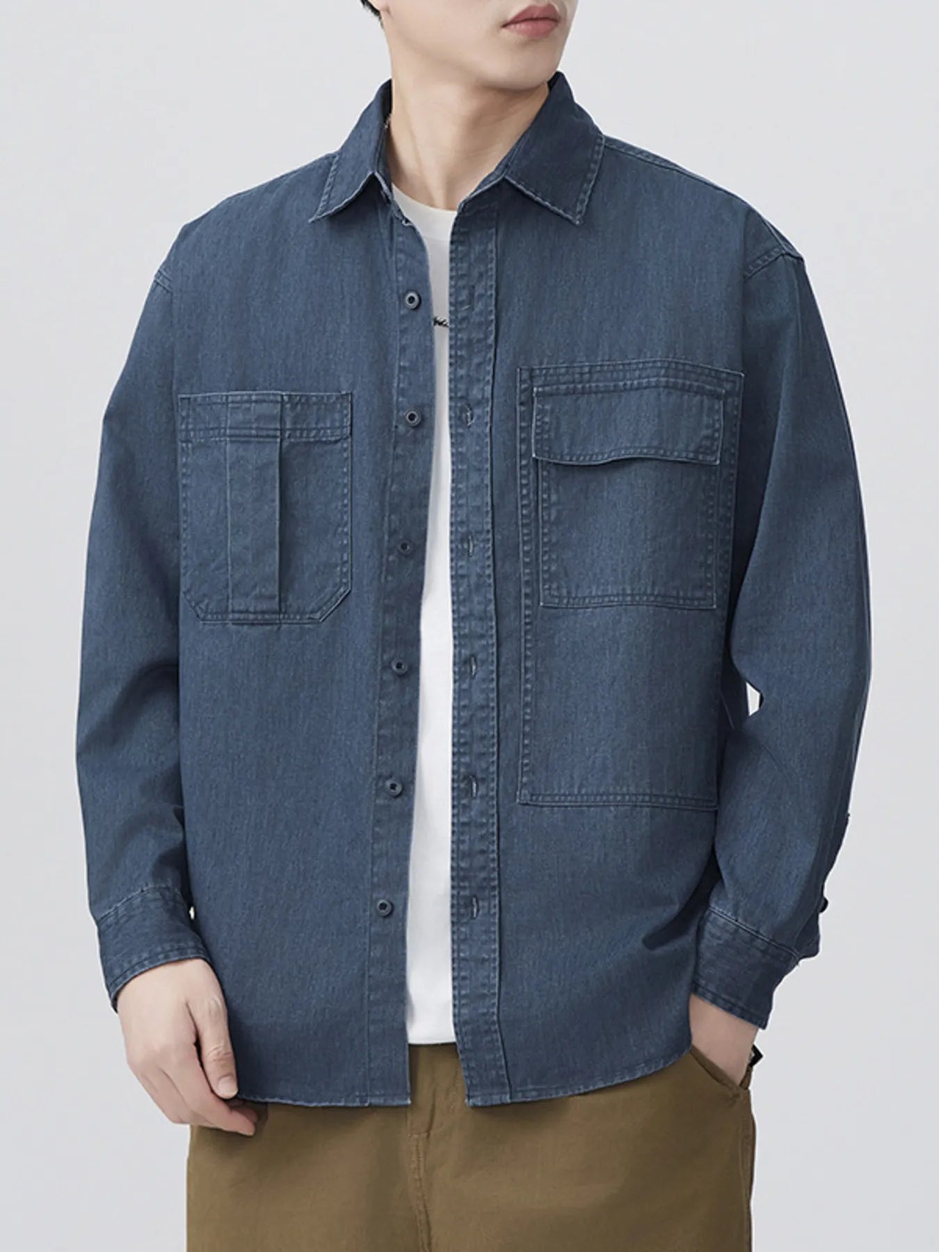 Men's Plus Size Button Up Long Sleeve Denim Shirt