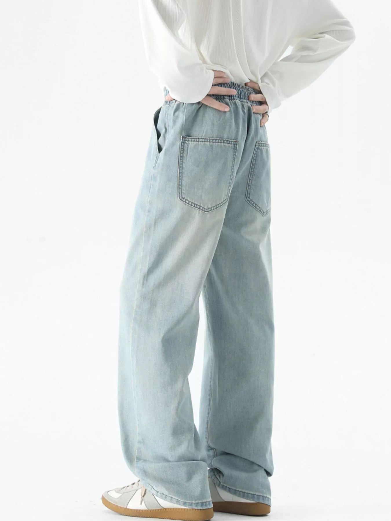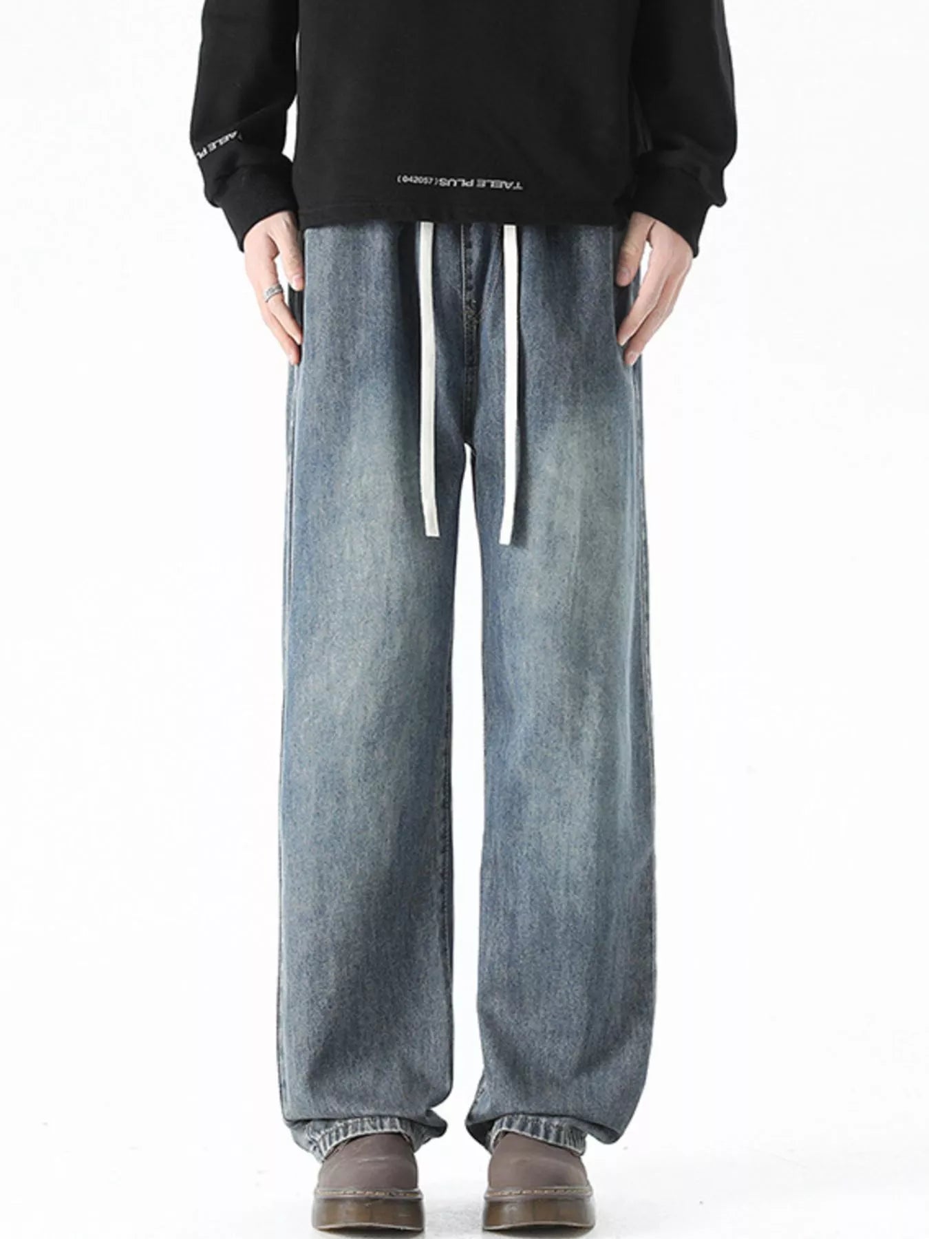 Men's Plus Size Drawstring Wide Leg Jeans