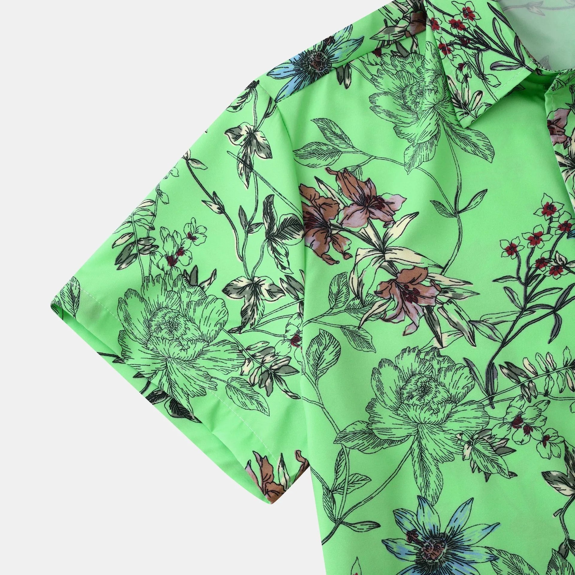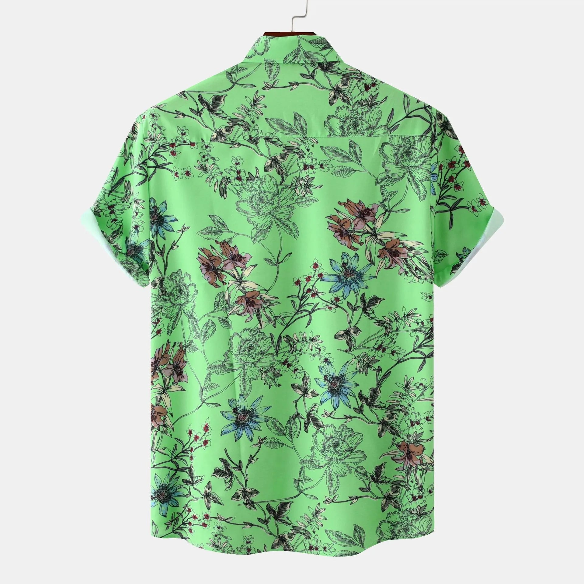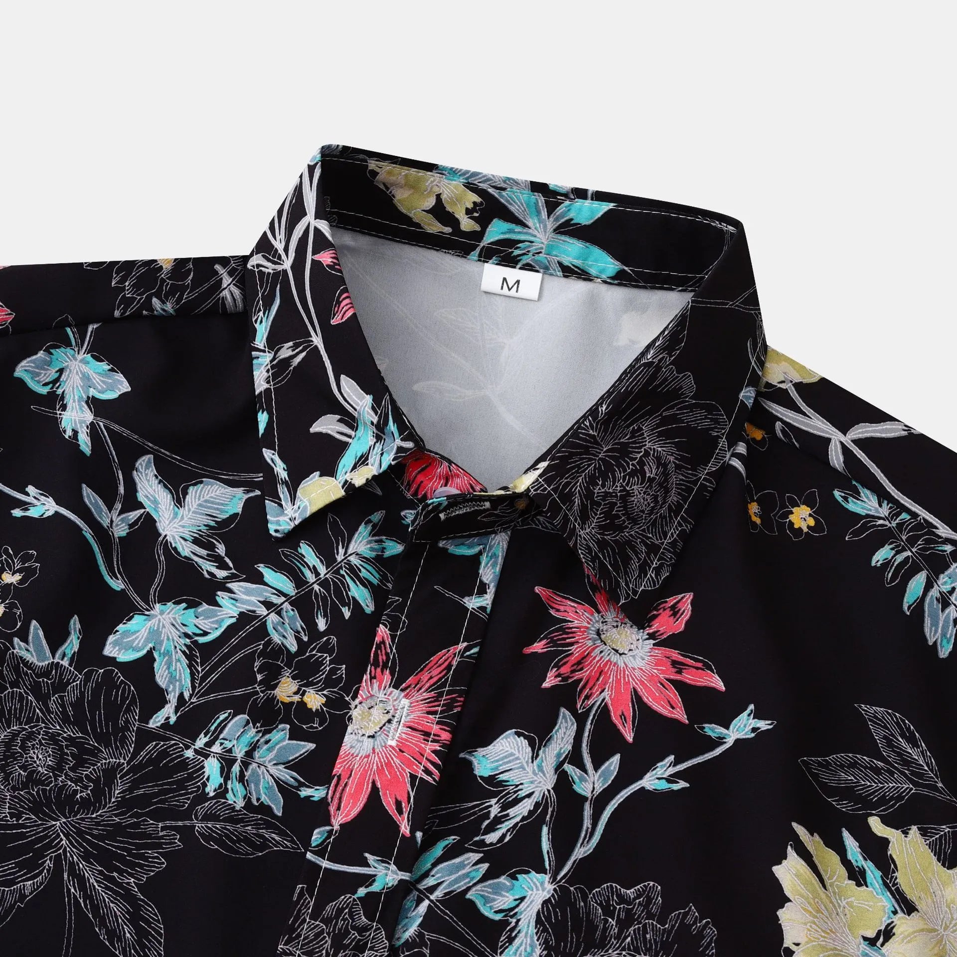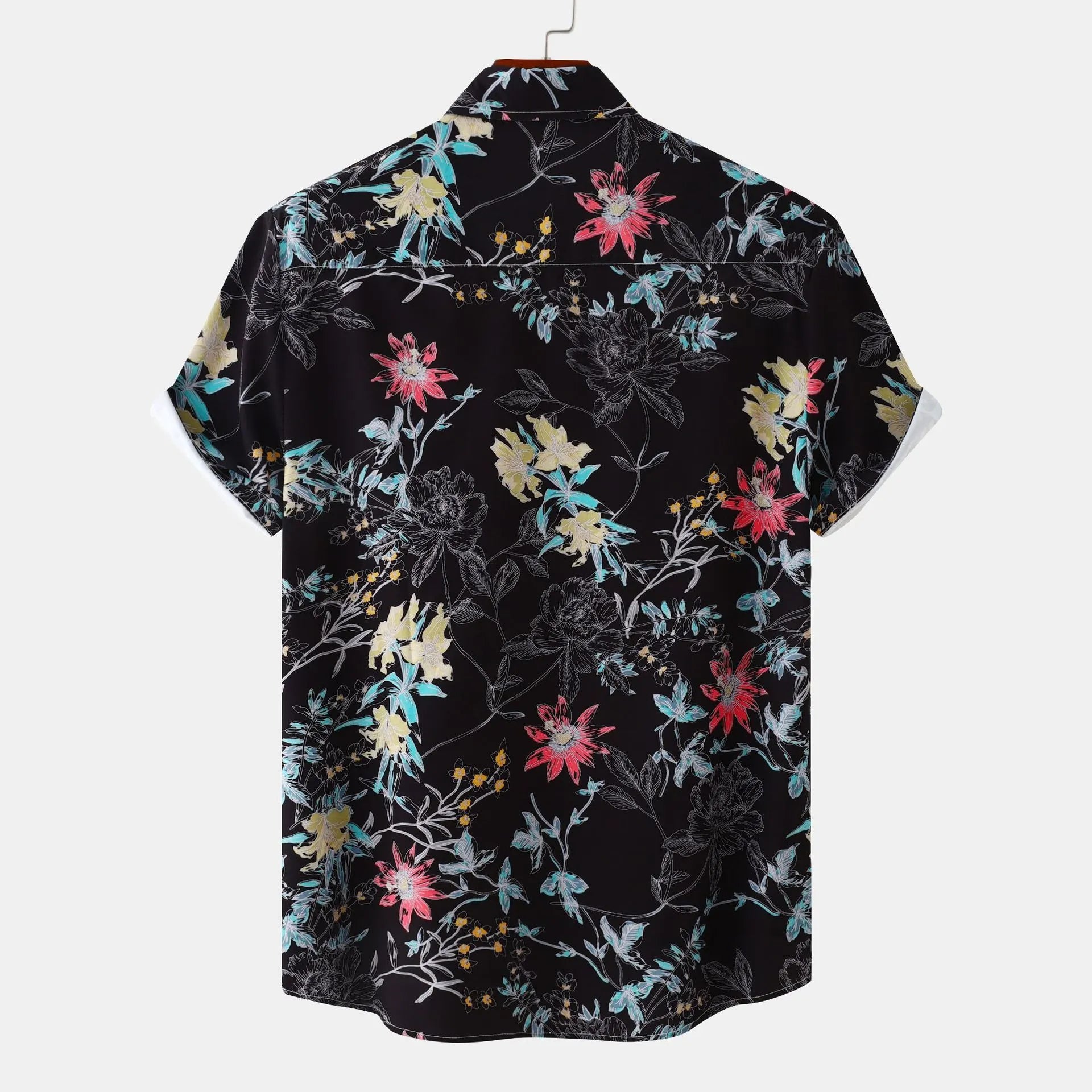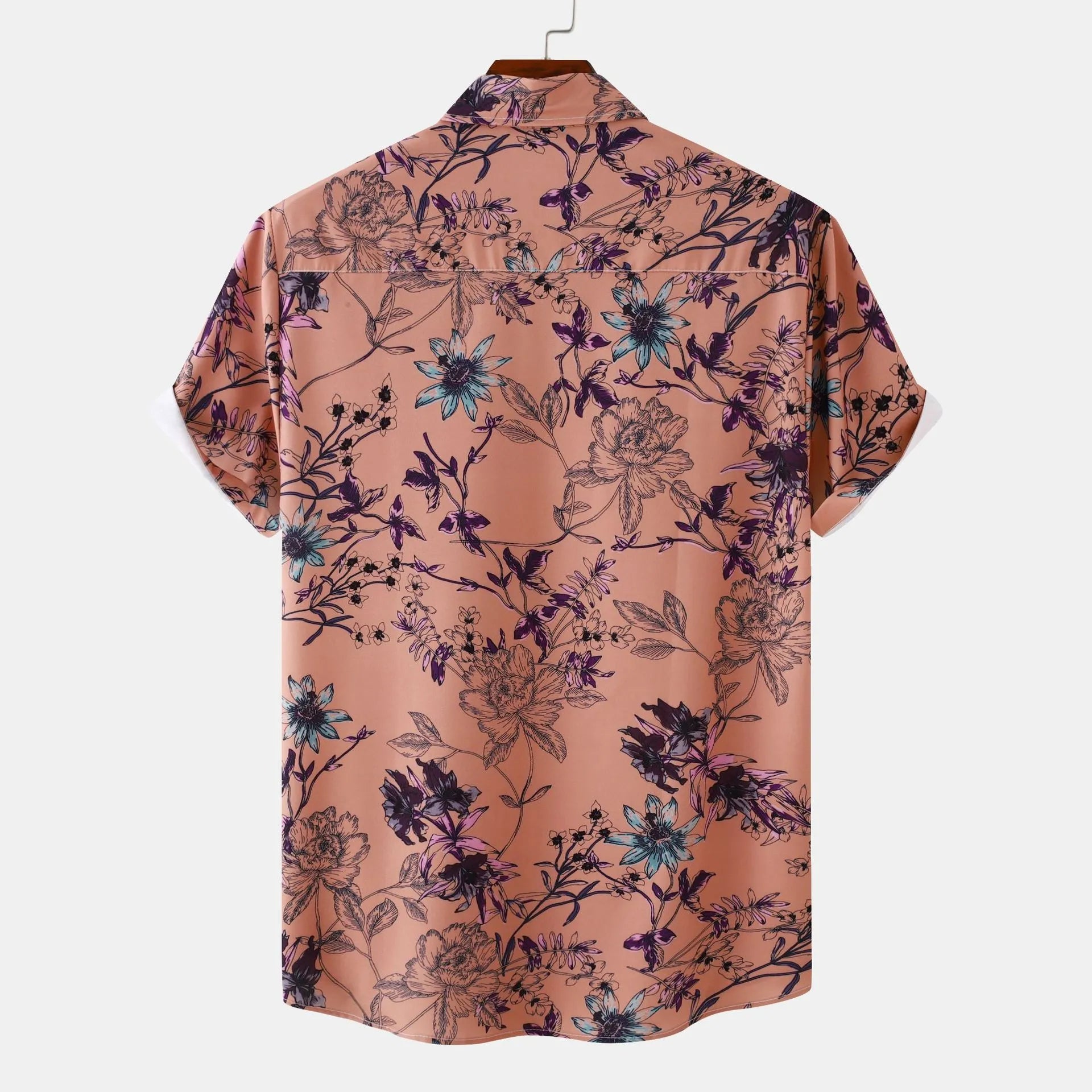 Men's Plus Size Floral Print Short Sleeve Button Down Casual Shirt