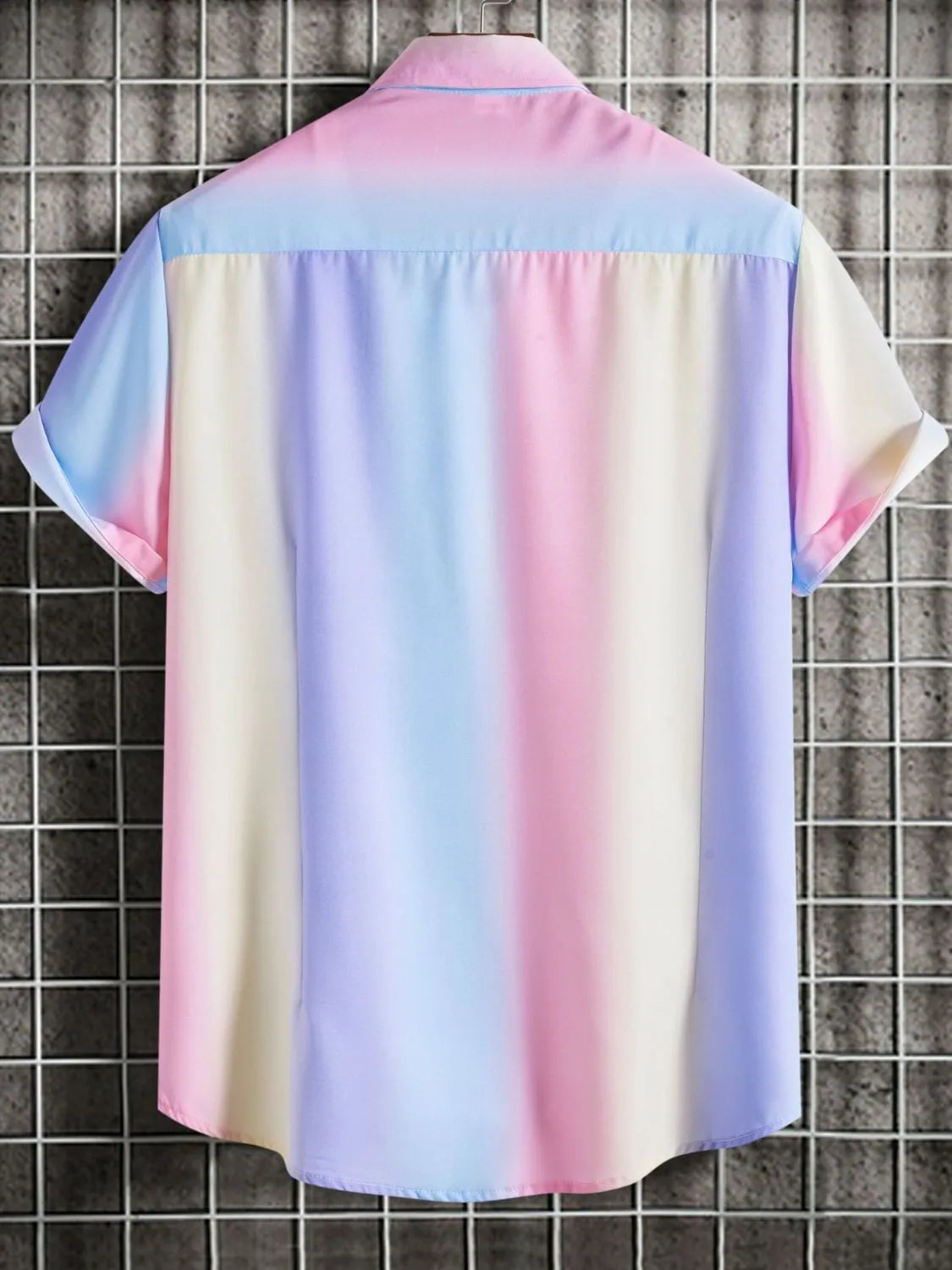 Men's Plus Size Gradient Short Sleeve Button-Down Shirt