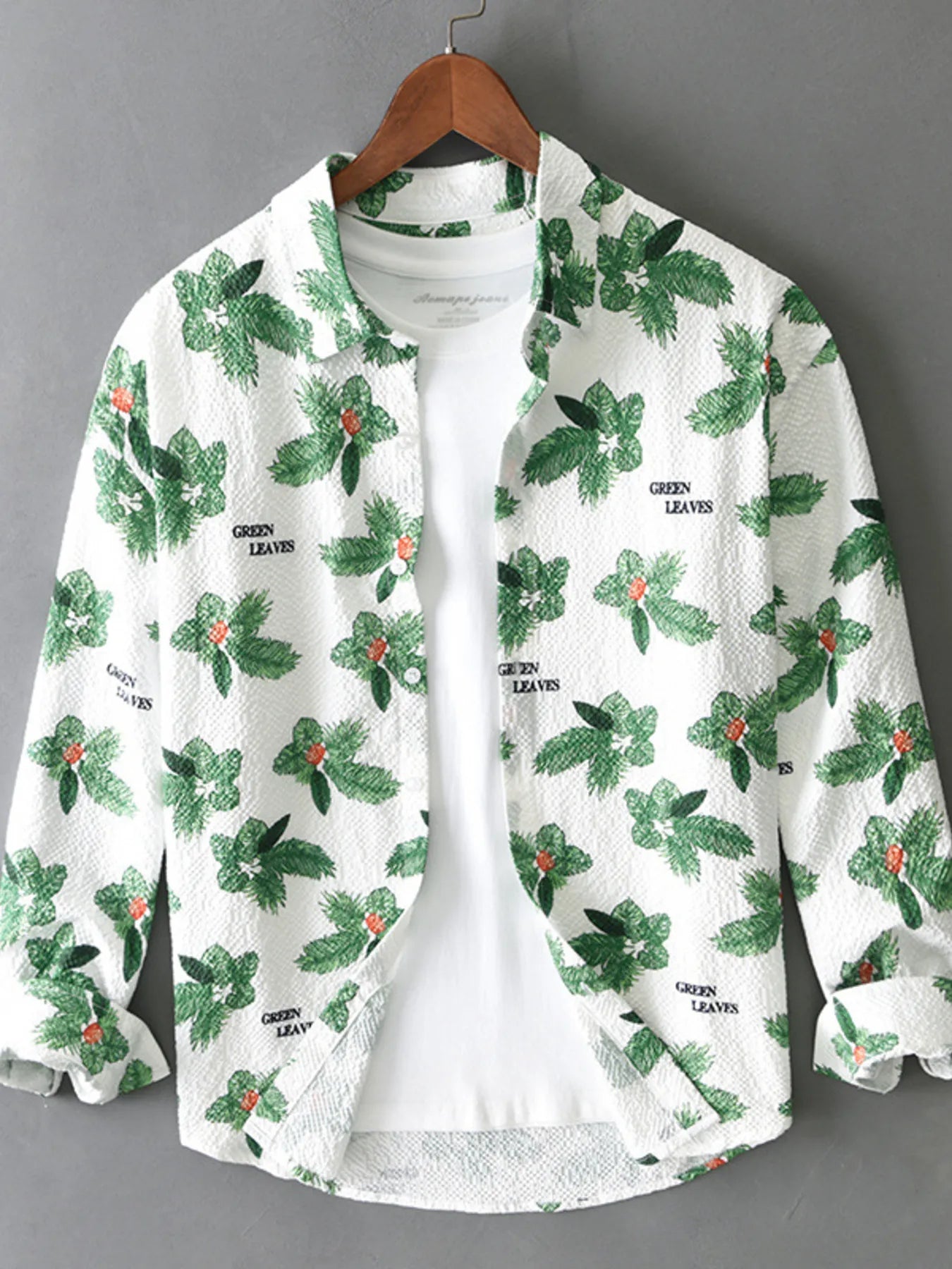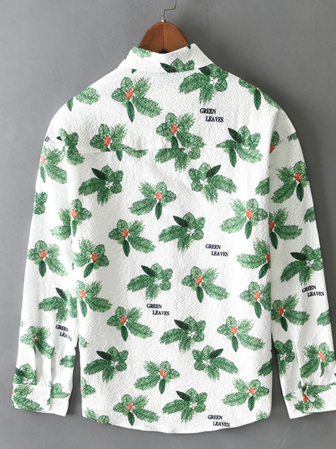 Men's Plus Size Printed Button Up Long Sleeve Shirt