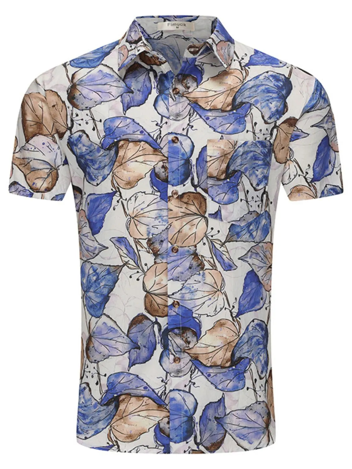 Men's Plus Size Printed Button Up Long Sleeve Shirt