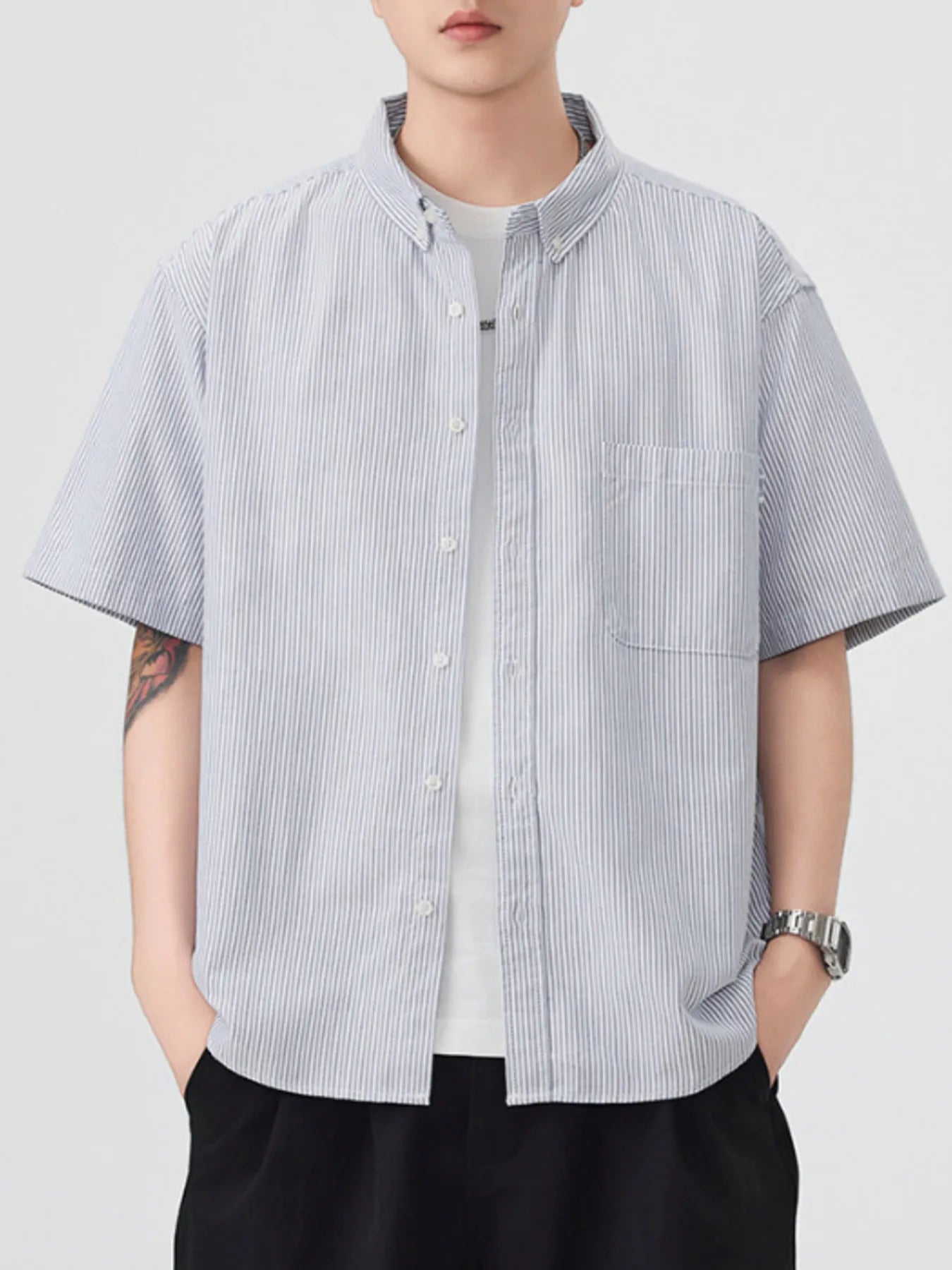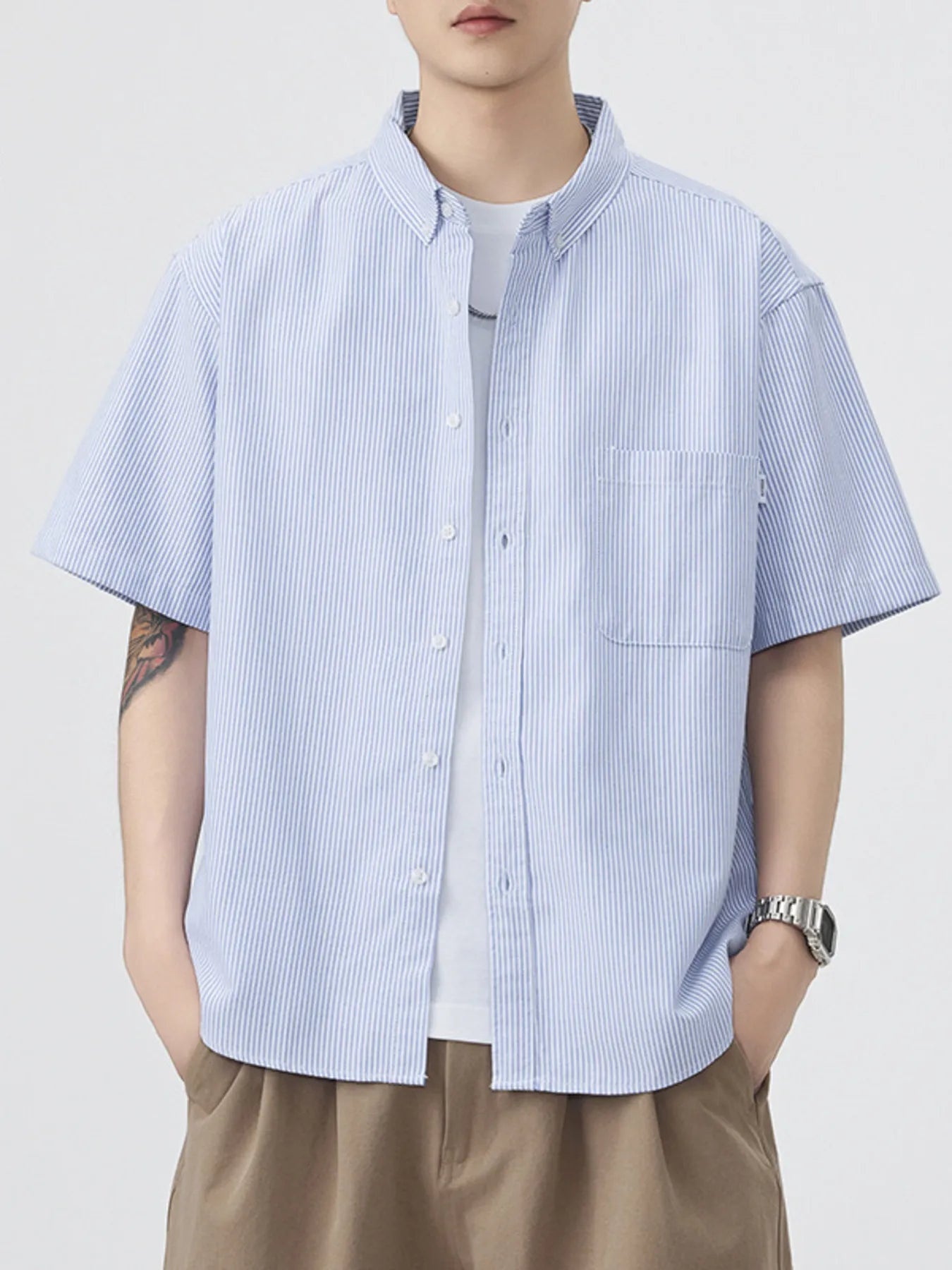 Men's Plus Size Striped Short Sleeve Button-Up Shirt