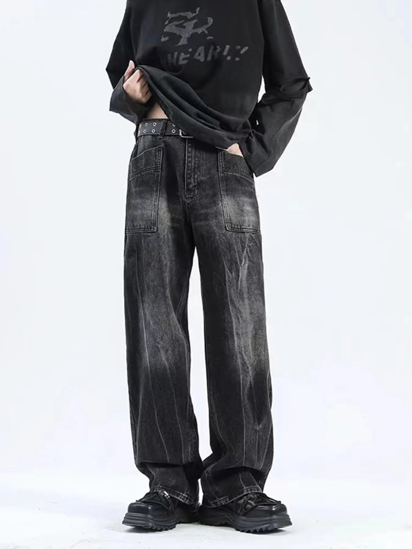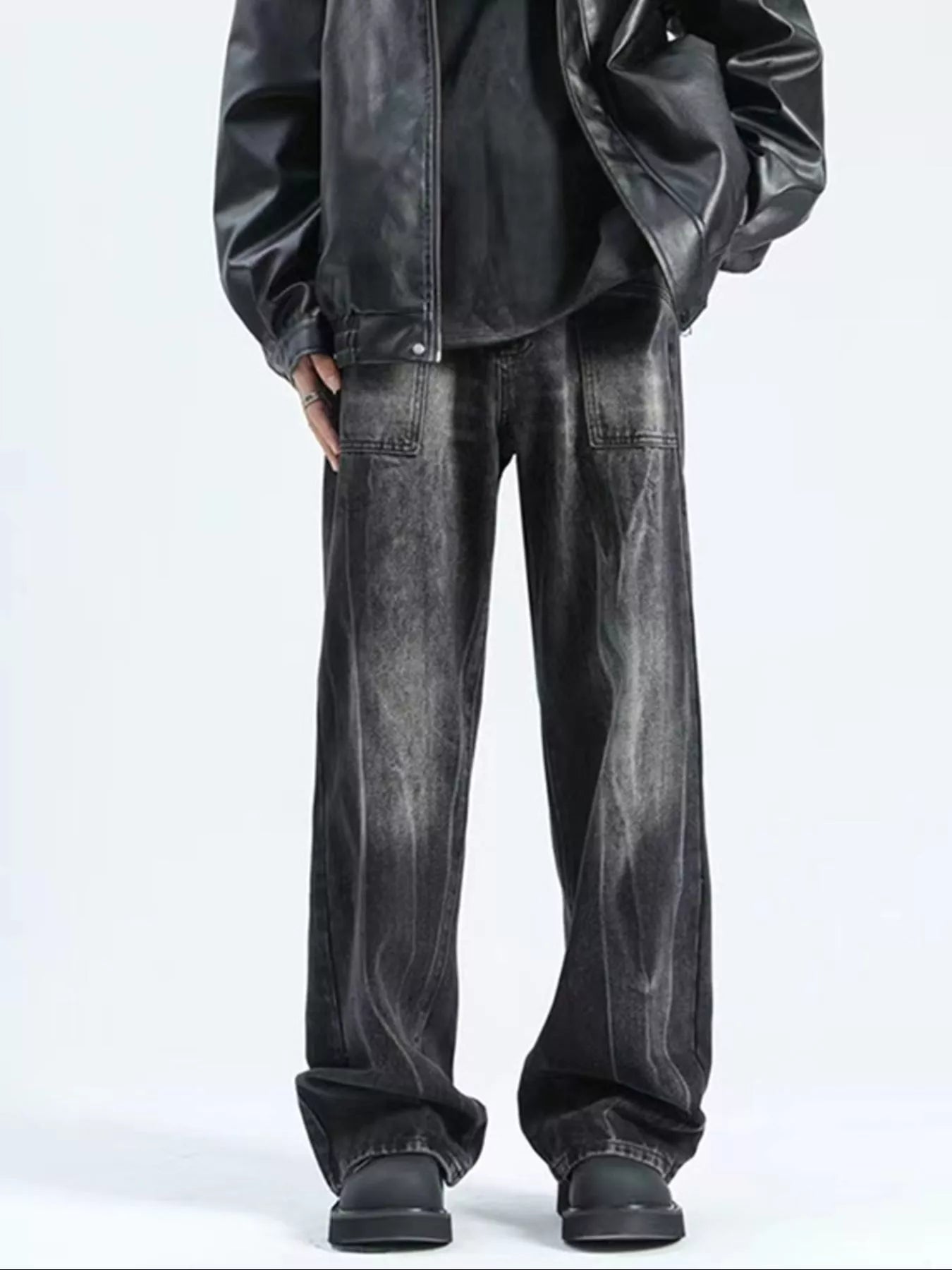 Men's Plus Size Wash Wide Leg Jeans