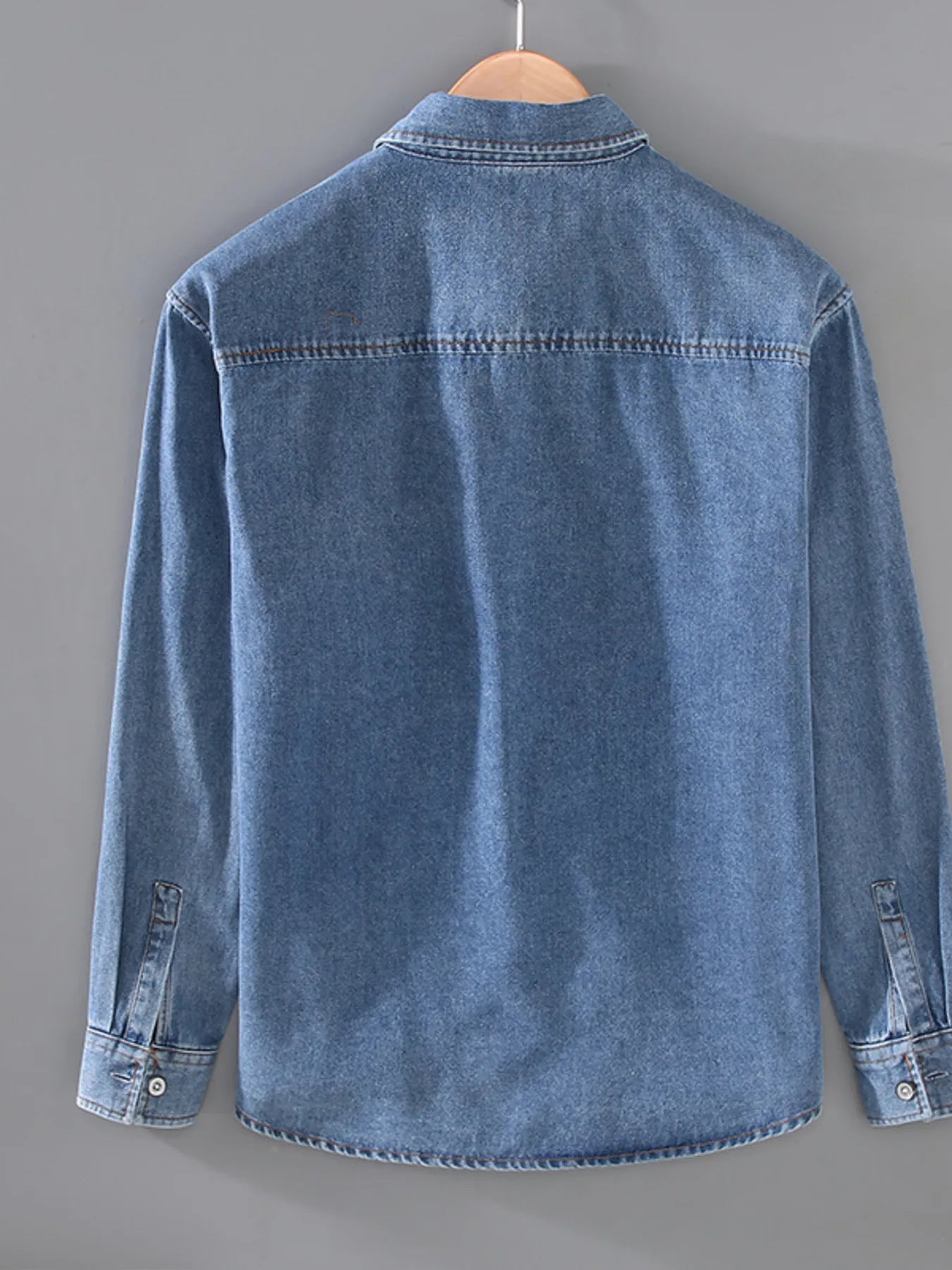 Men's Plus Size Washed Long Sleeve Denim Shirt