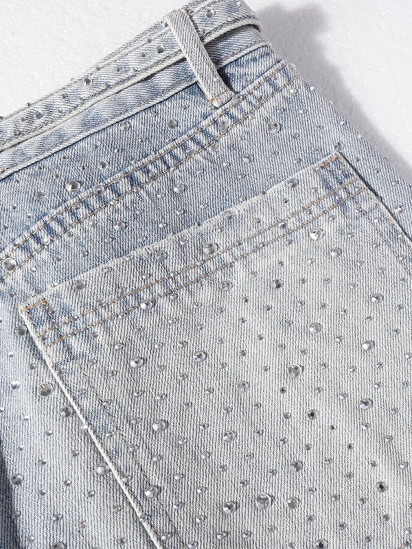 Men's Rhinestone Embellished Wash Relaxed Fit Jeans