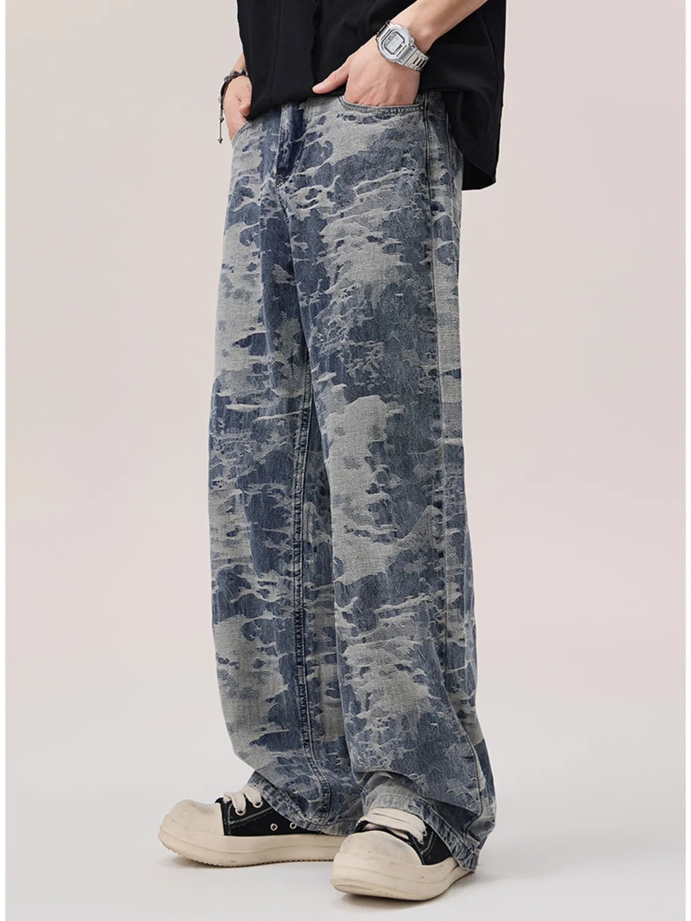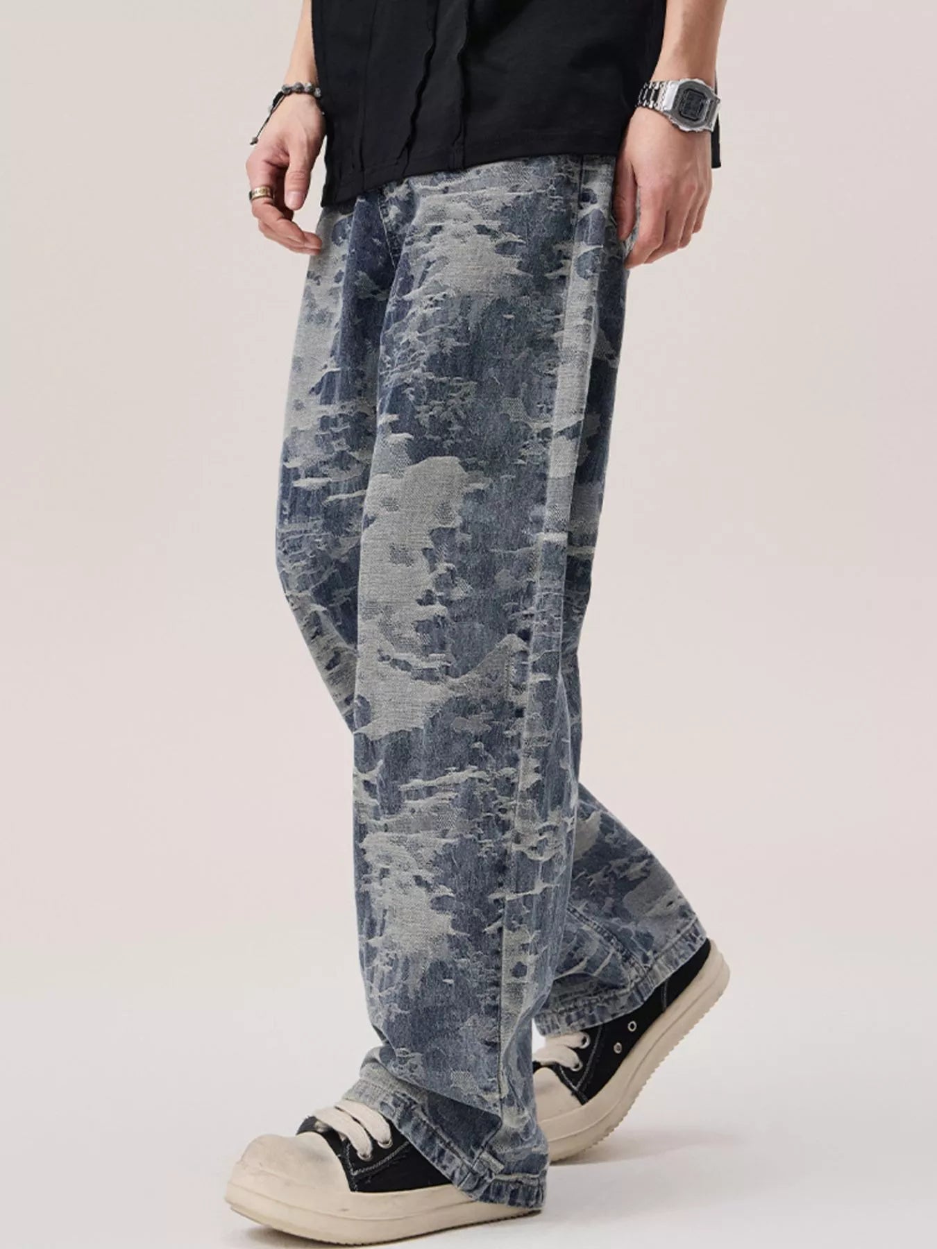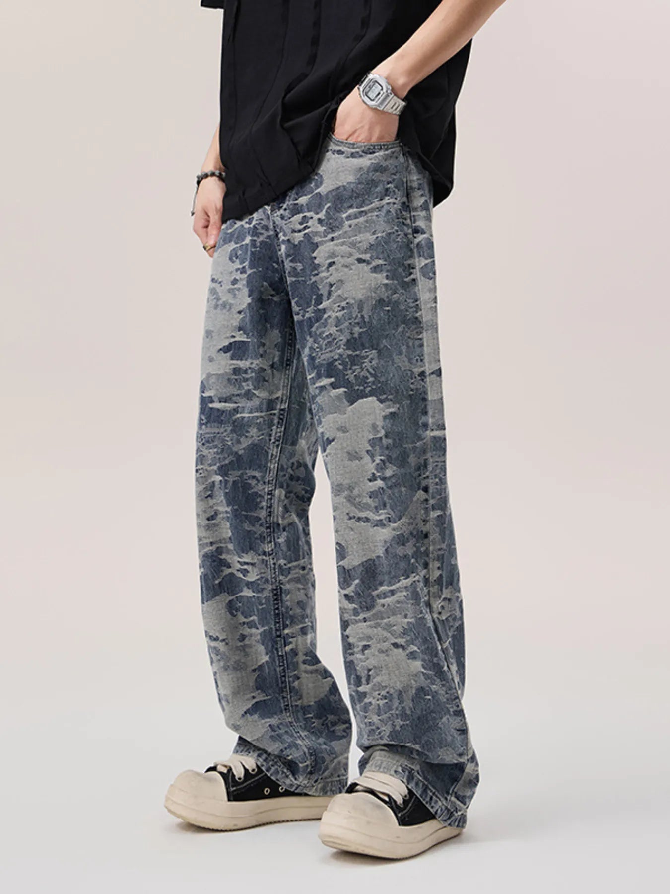Men's Wash Wide Leg Jeans
