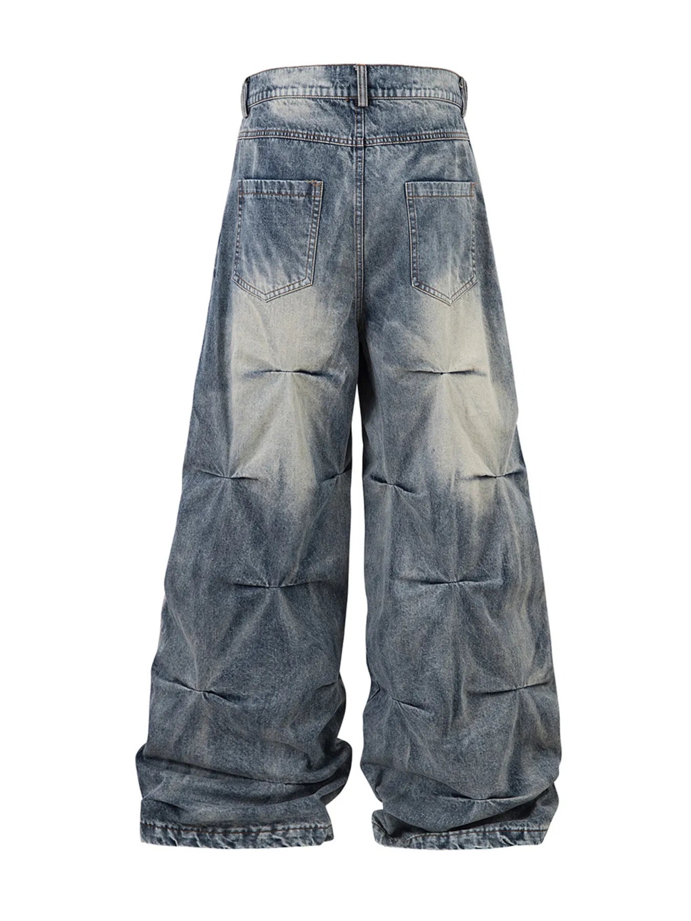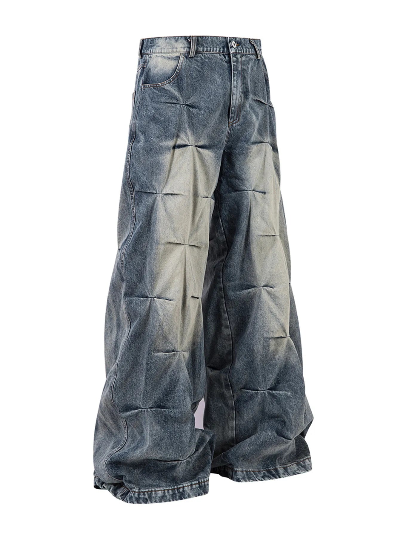 Men's Washed Wide Leg Pleated Jeans