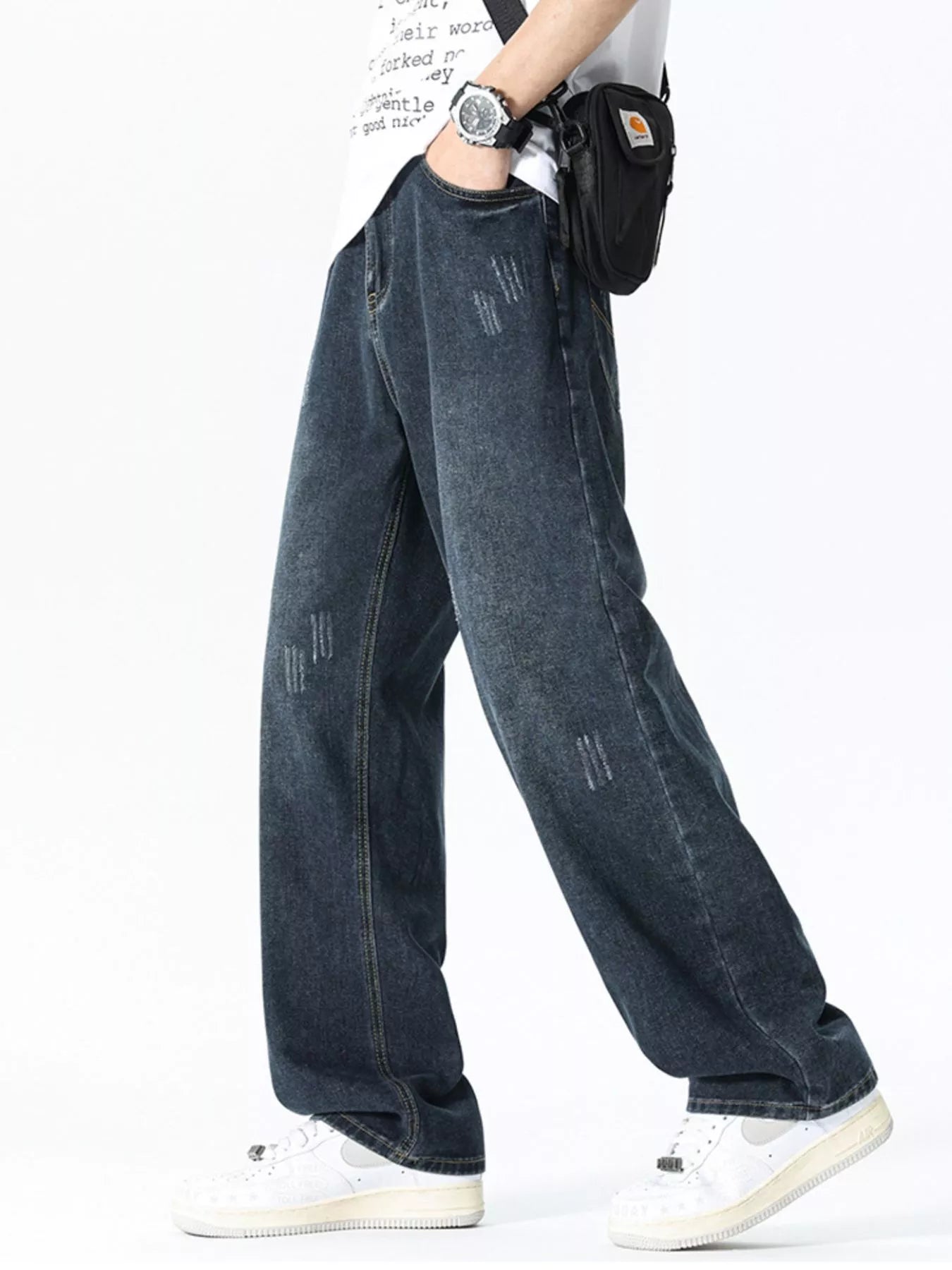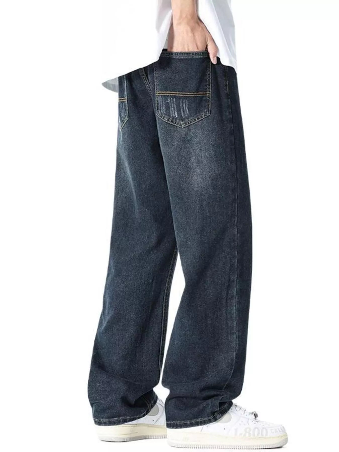 Men's Wide Leg Washed Jeans