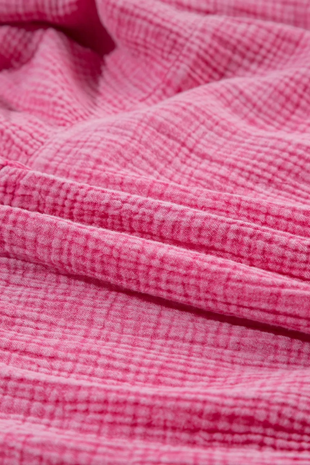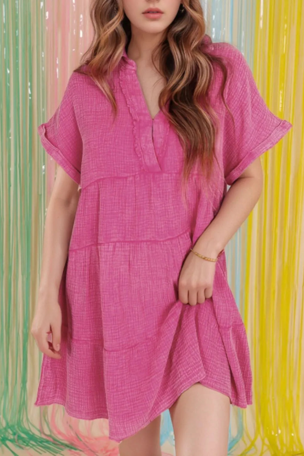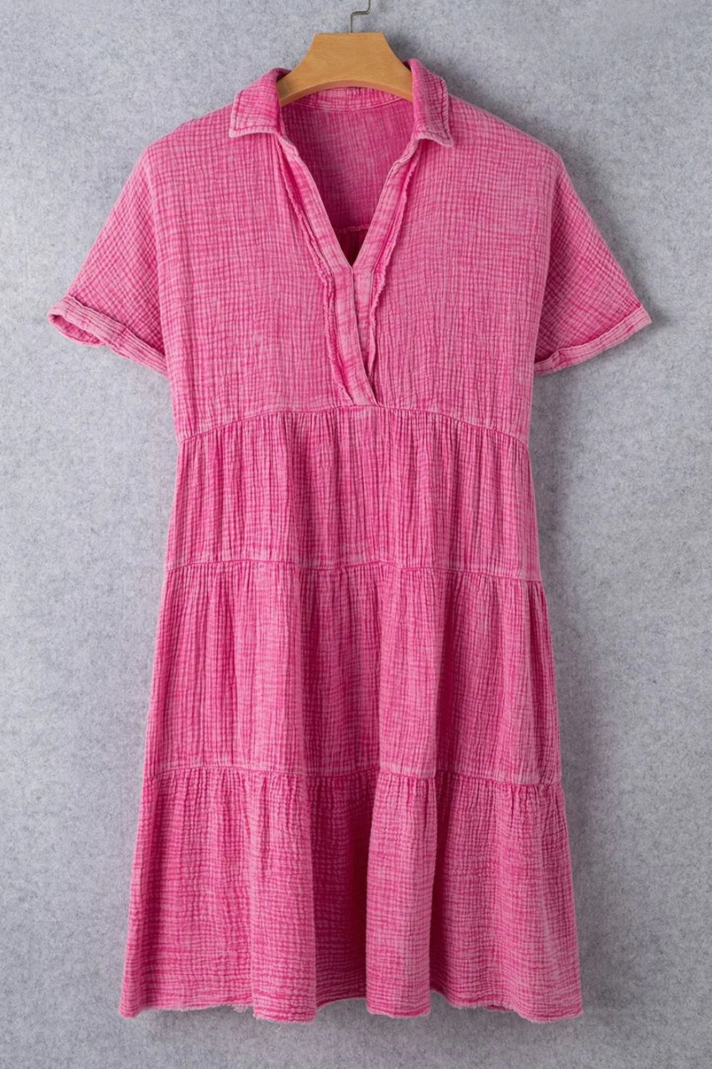 Mineral Wash Crinkle Split Neck Raw Hem Tiered Dress