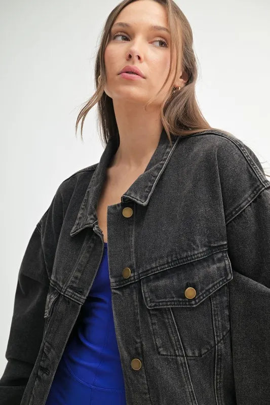 A boxy-cut denim jacket is a modern and stylish take on the classic wardrobe staple. The boxy cut refers to the jacket's shape, which is slightly oversized and has a relaxed fit for a casual and effortless look. The denim fabric gives the jacket a timeless and versatile appeal that can be dressed up or down for various occasions. A boxy-cut denim jacket is perfect for layering over a t-shirt, blouse, or dress to add a cool and edgy vibe to your outfit. Pair it with jeans for a denim-on-denim look, or contrast it with a flowy skirt for a chic juxtaposition. This type of jacket is a versatile piece that can be worn year-round and is a must-have in any wardrobe for its style and versatility.