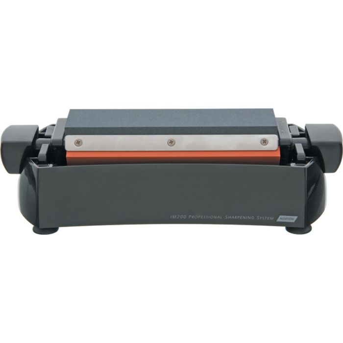 Sharpening System. Includes three 8" sharpening stones, (1) fine India, (1) medium Crystolon and (1) coarse Crystolon mounted on an... Leer más...