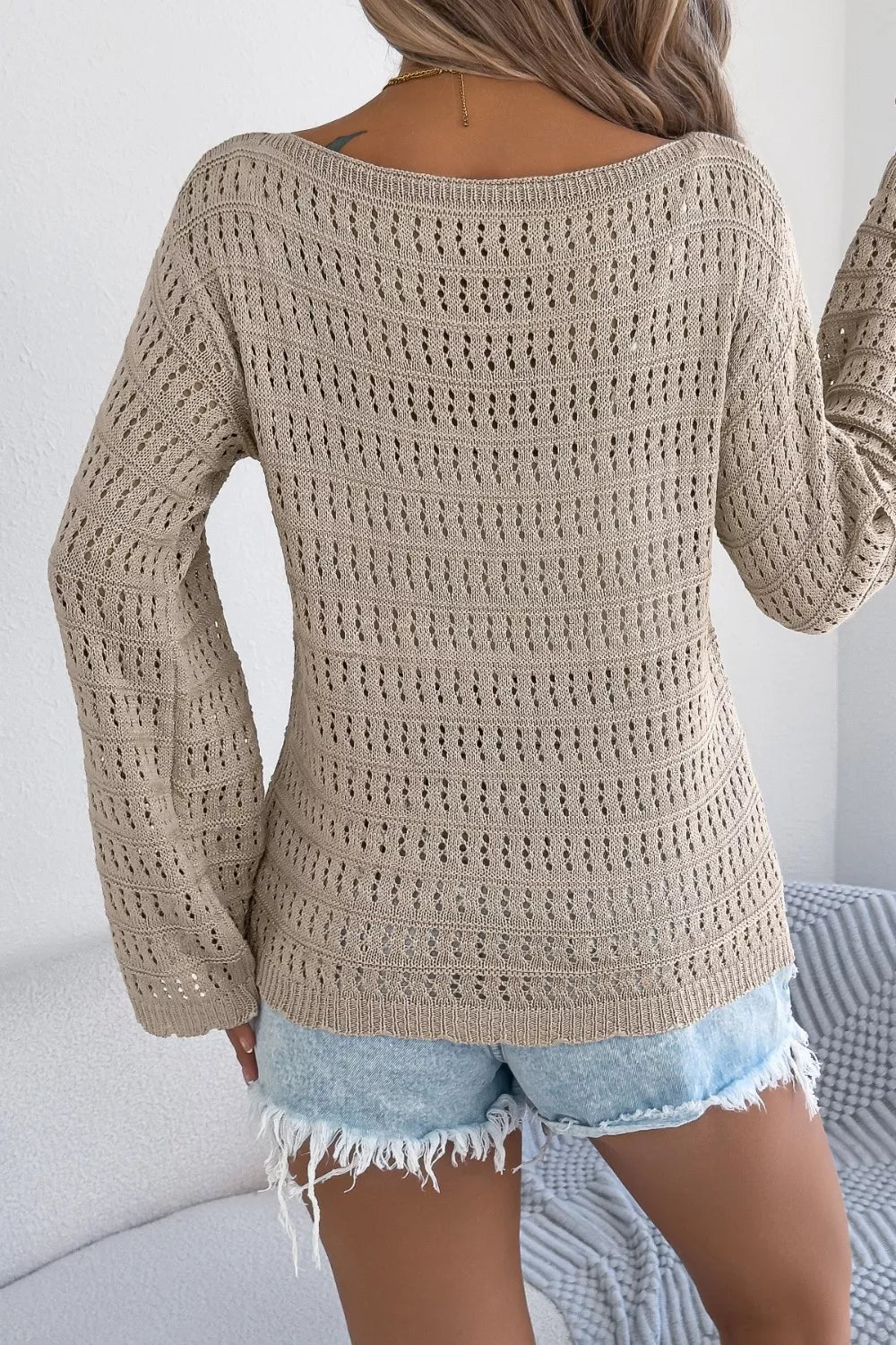 Openwork Boat Neck Knit Cover Up