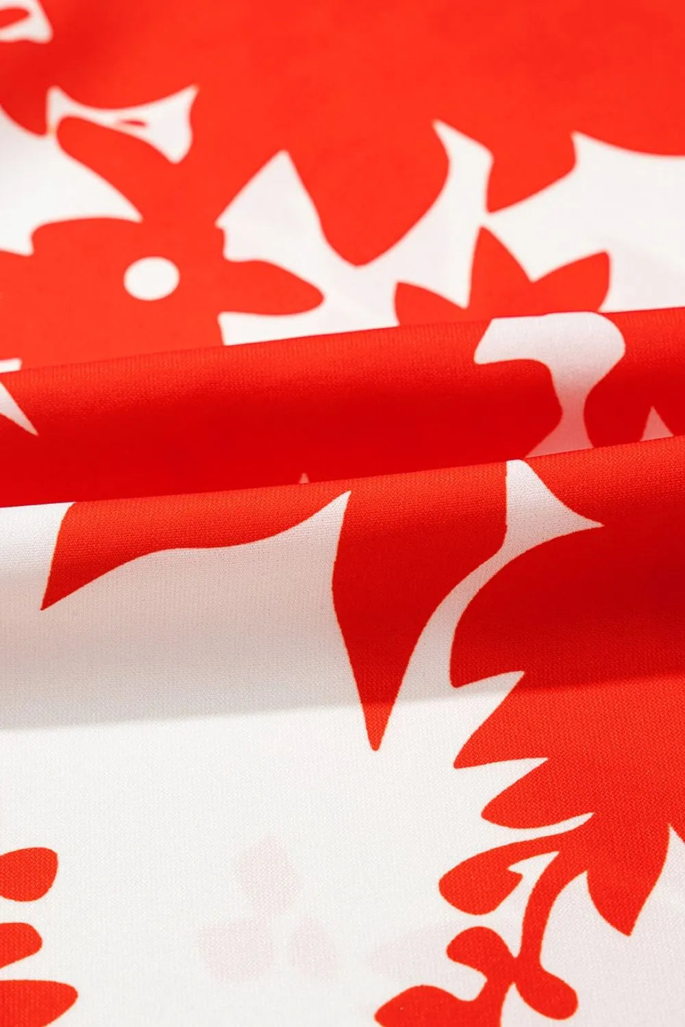 Plant Print Tiered Ruffled Sleeve Tie Neck Blouse