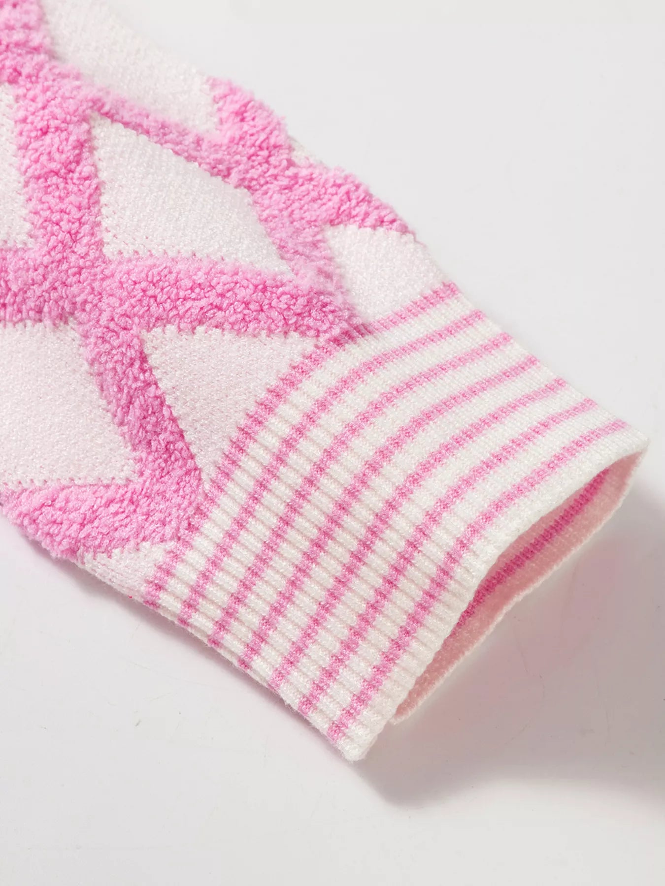 Rhombus Pattern Knit Open Front Pocketed Cardigans