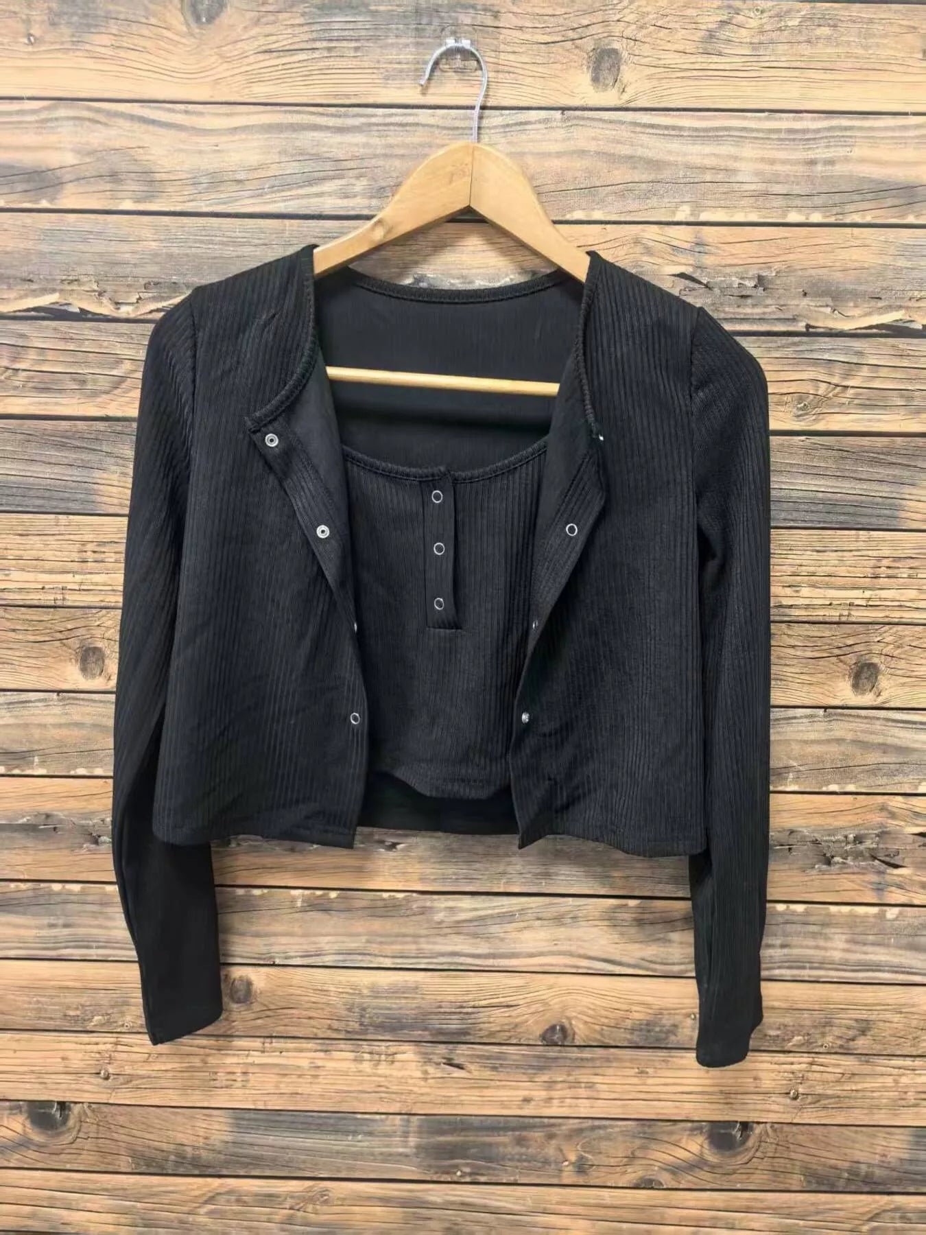 Features:Ribbed,Buttoned Number of pieces:Two-piece Stretch:Moderate stretch Material composition:95% polyester, 5% spandex Care instructions:Machine wash cold. Tumble dry low. Imported Product... Leer más...