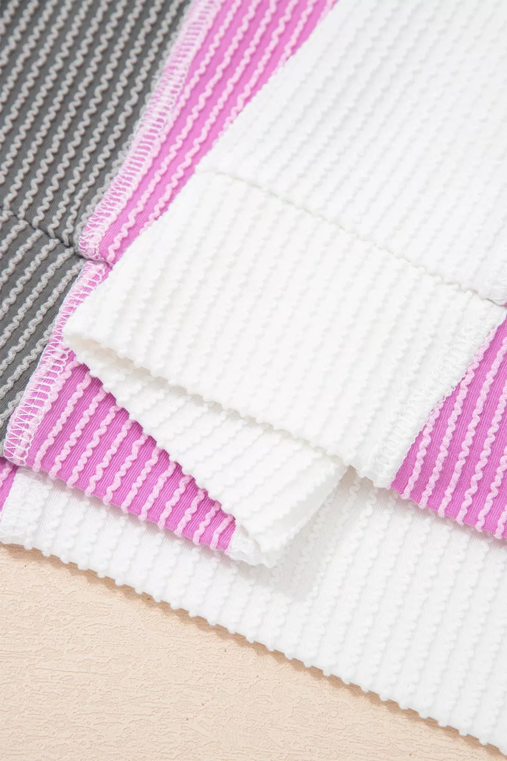 Ribbed Raw Seam Color Block Patchwork Long Sleeve Top