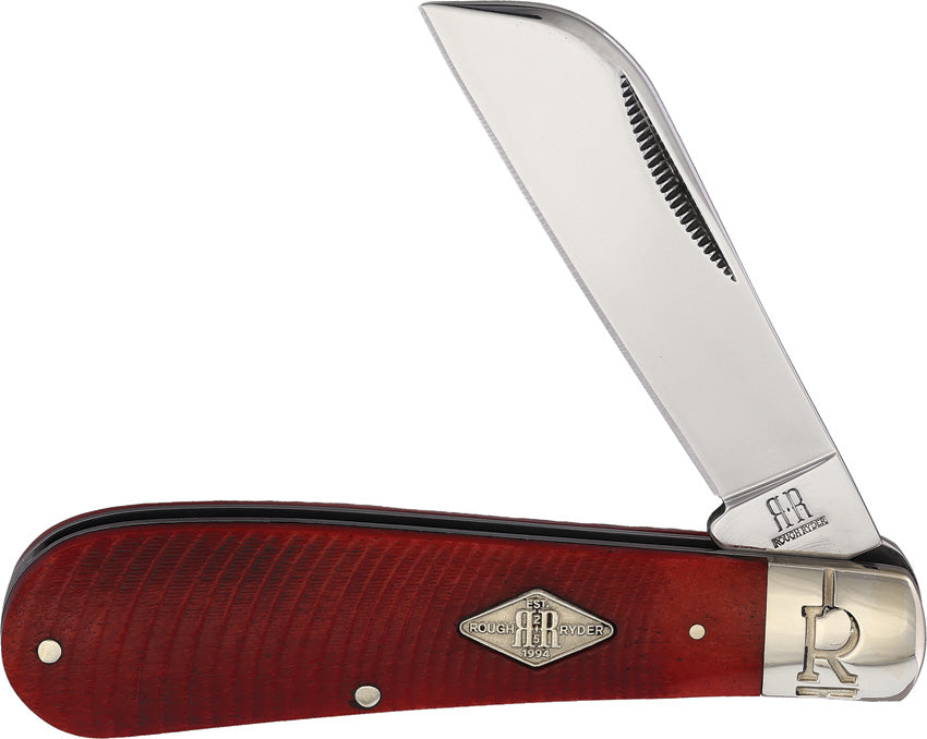 Bolster Lock. 3.88" (9.86cm) closed. Mirror finish stainless Wharncliffe blade. Red sculpted bone handle. Nickel silver bolster(s). Inlay shield. Boxed.Please... Leer más...