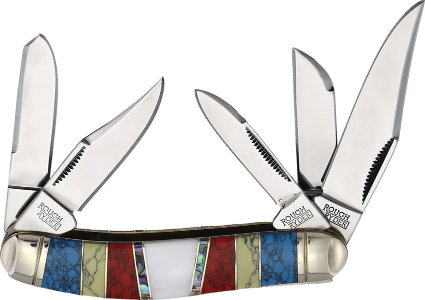 Stoneworx 3.75" (9.53cm) closed. Mirror finish stainless clip, sheepsfoot, skinner, and spey blades. Nickel silver bolster(s). Pen blade. Red, blue,... Leer más...