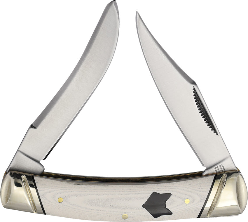 Arctic Fox Series. 3.5" (8.89cm) closed. Satin finish stainless clip and long spey blades. White smooth micarta handle. Nickel silver... Leer más...