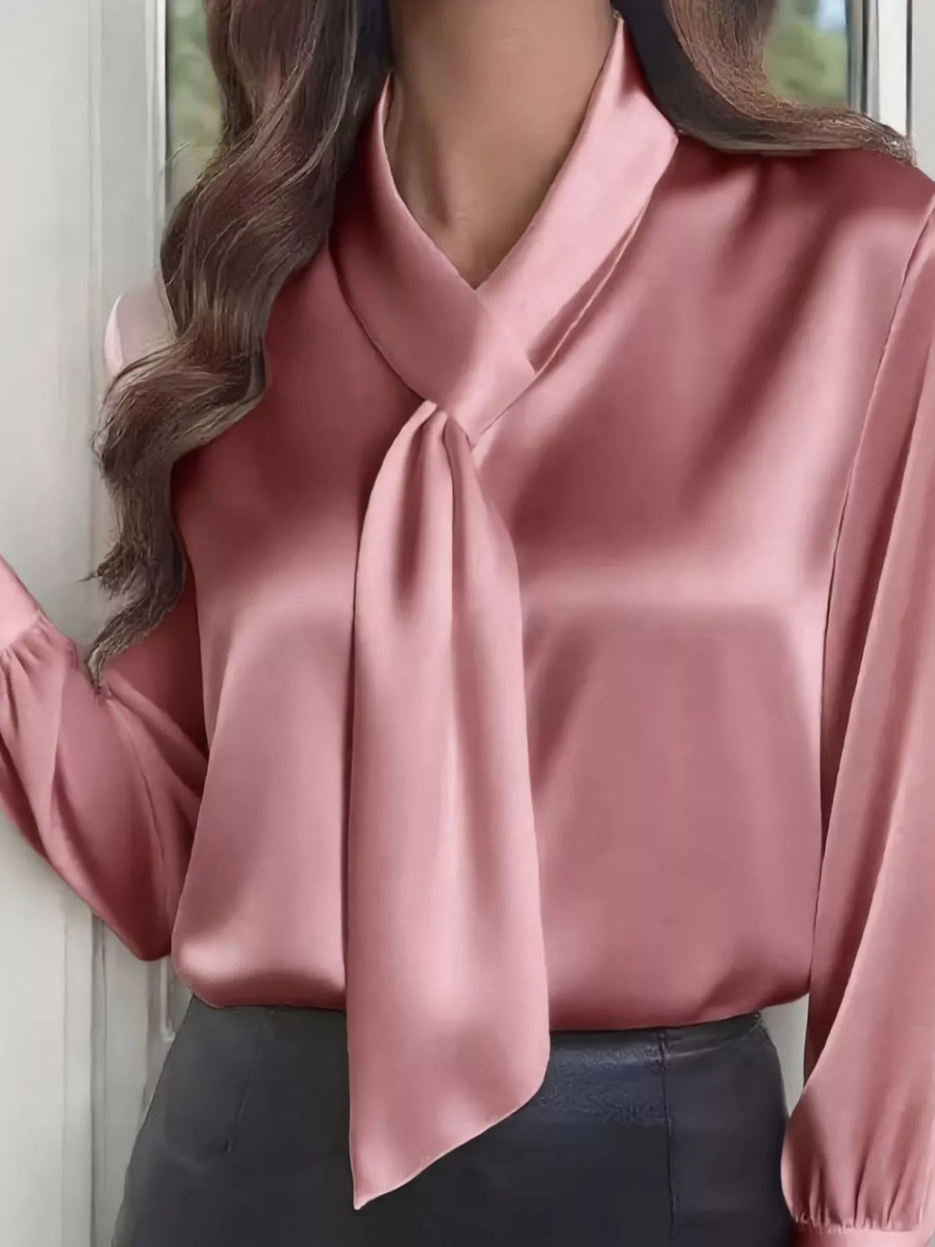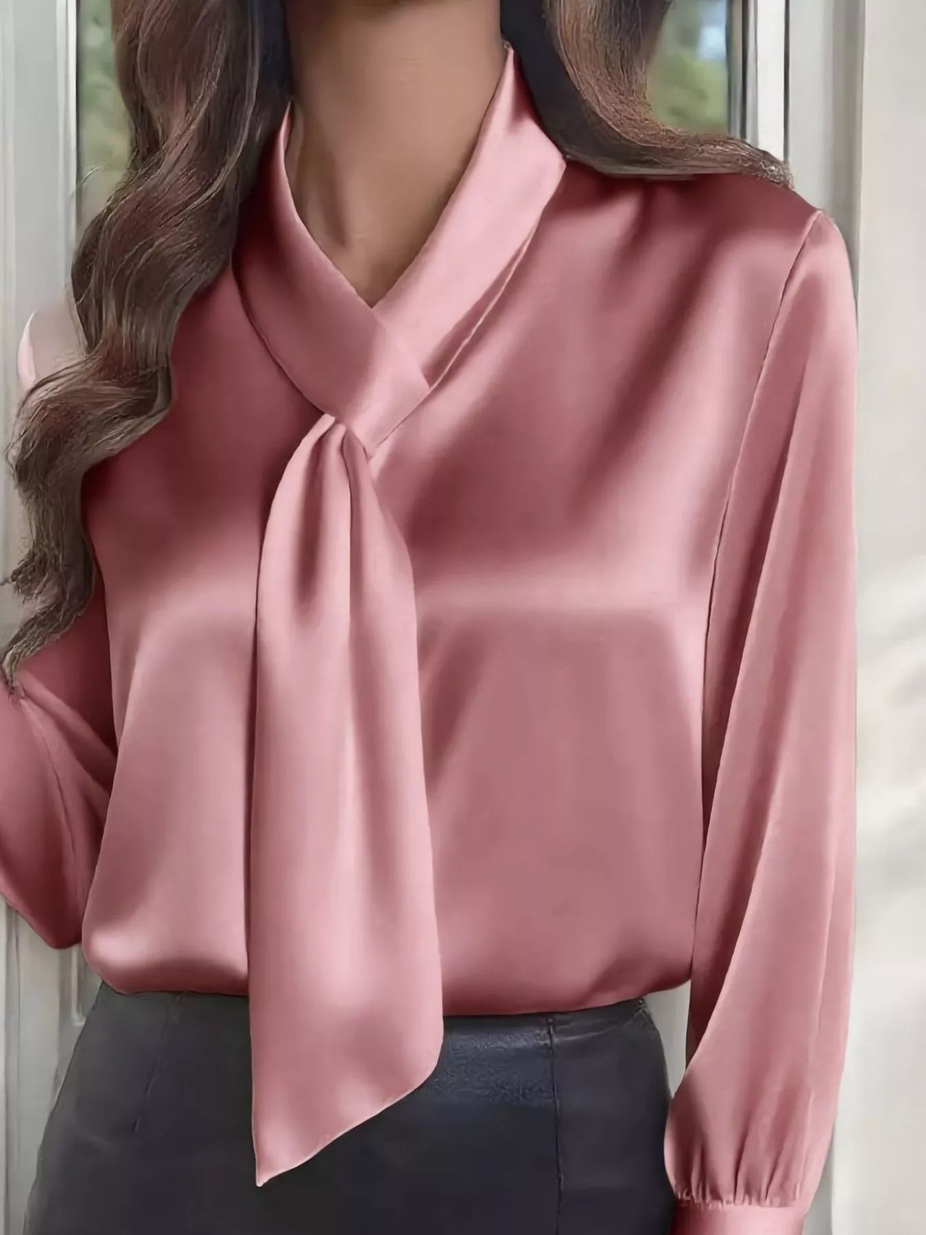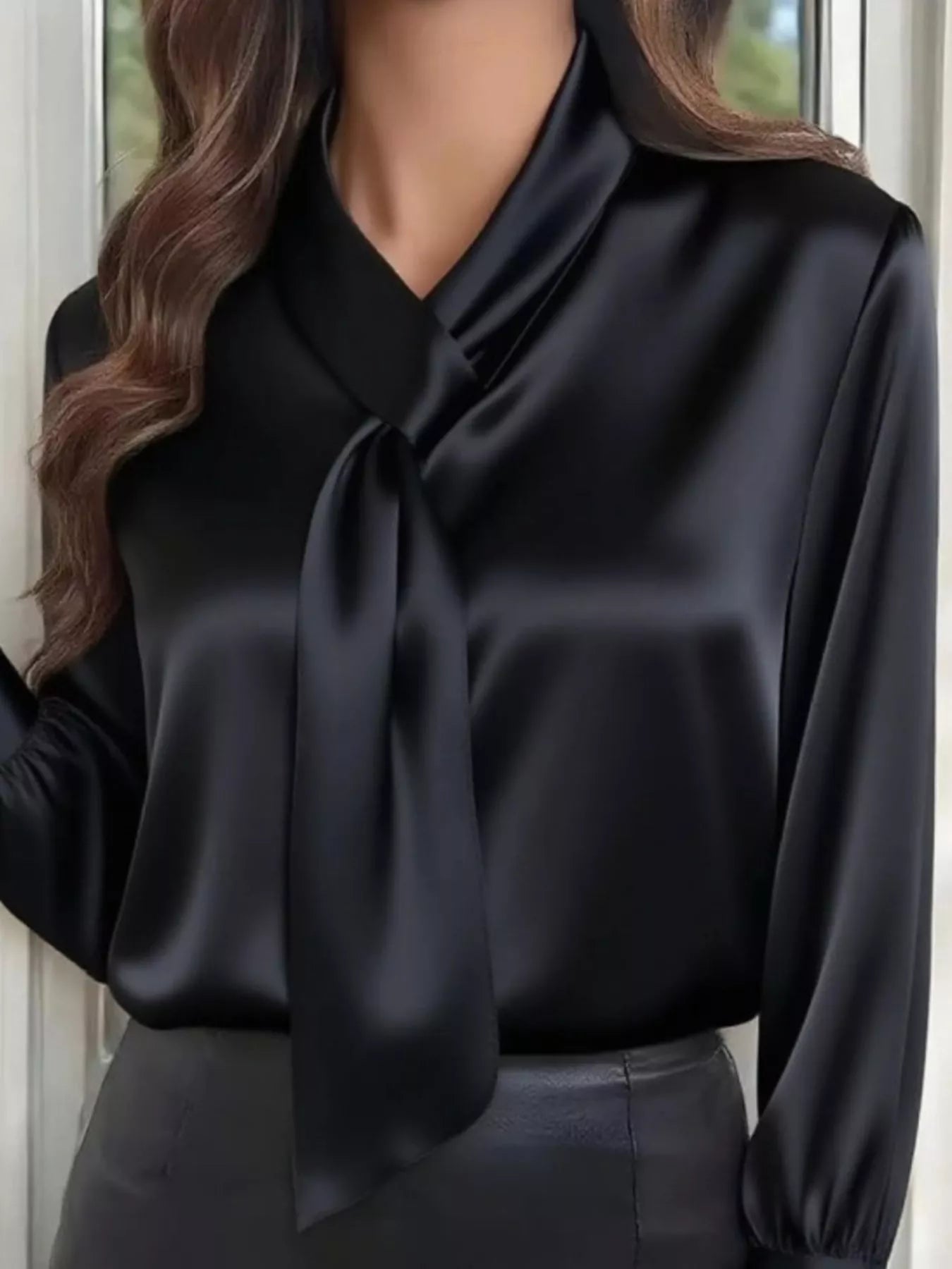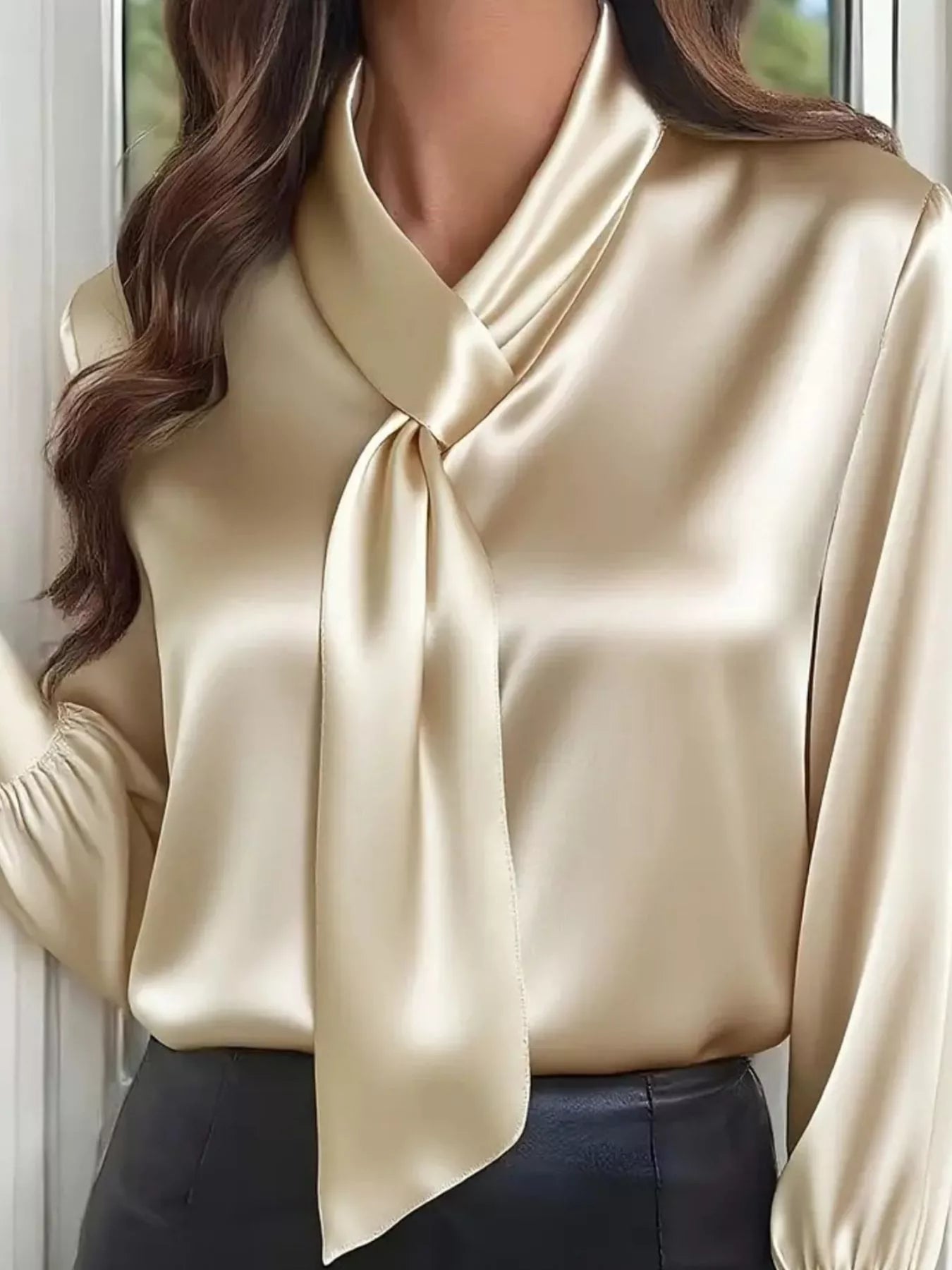 Satin Tie-Neck Long Sleeve Blouse