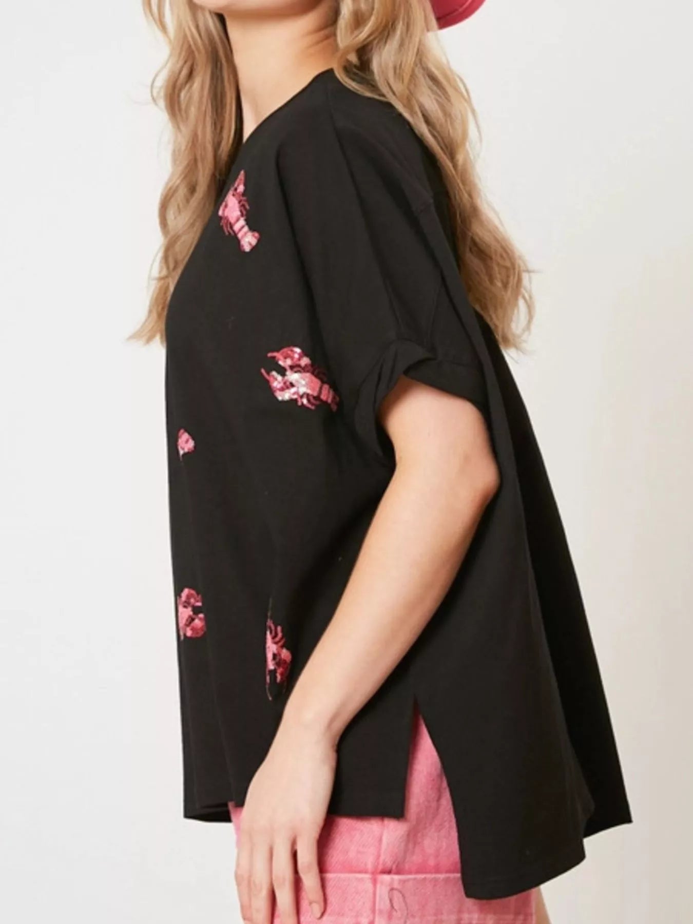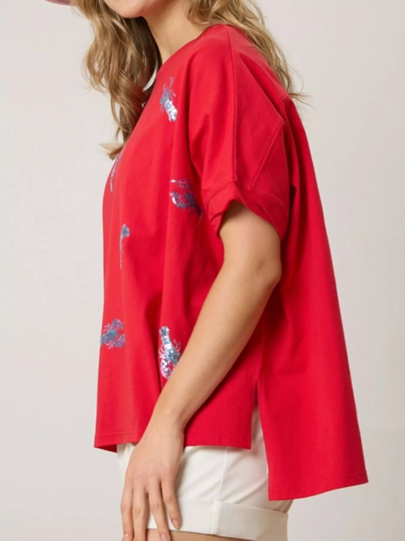 Sequin Lobster Round Neck T-Shirt