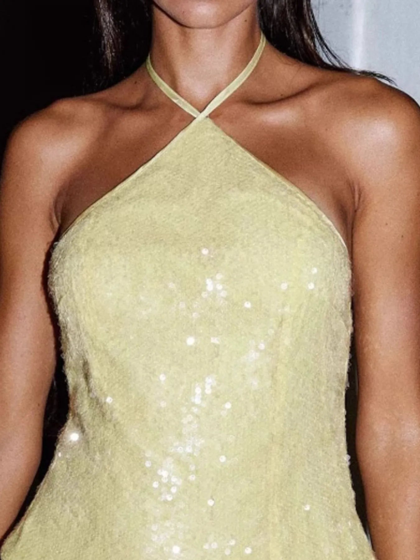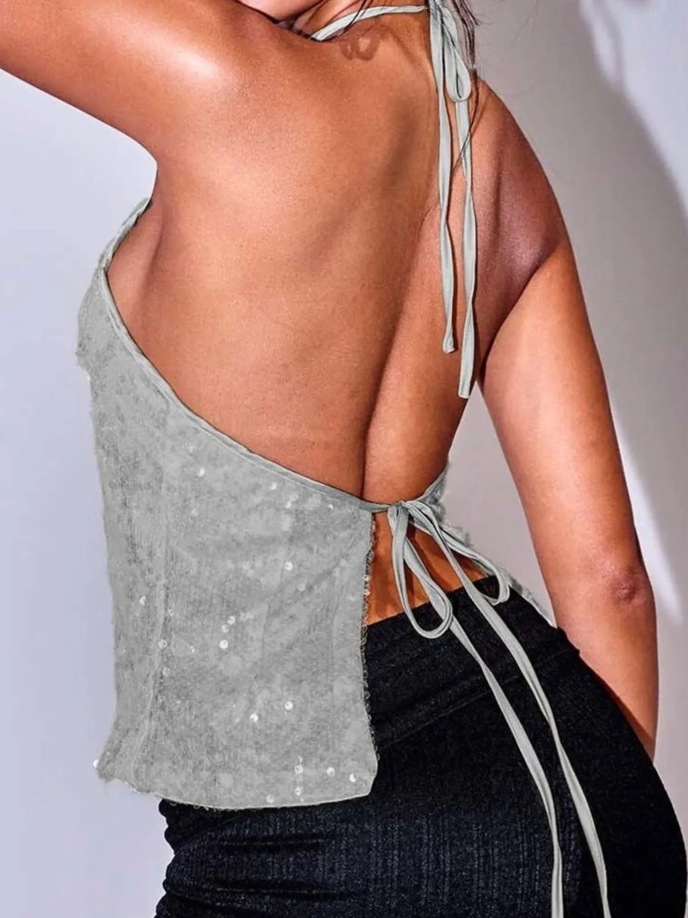 Features:Backless,Sequin,Tied Stretch:No stretch Material composition:95% polyester, 5% spandex Care instructions:Machine wash cold. Tumble dry low. Imported Product Measurements (Measurements by... Leer más...