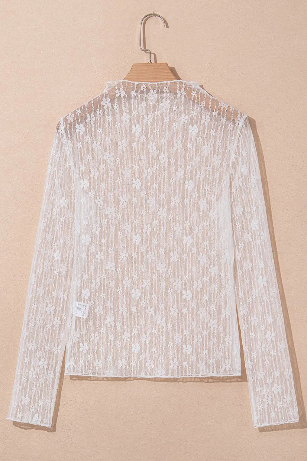 Sheer Floral Lace Long Sleeve Slim Fit Top