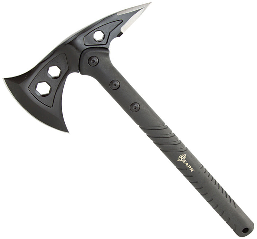 15.75" overall. 7.38" black oxide coated 2Cr13 stainless axe head with 3.63" cutting edge. Black nylon handle. Lanyard hole. Spike... Leer más...