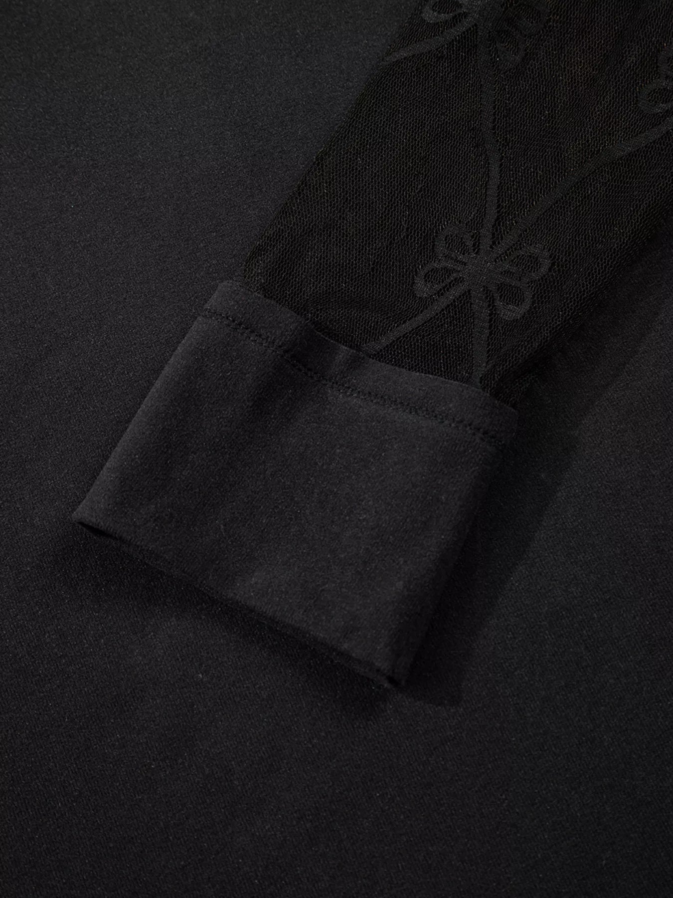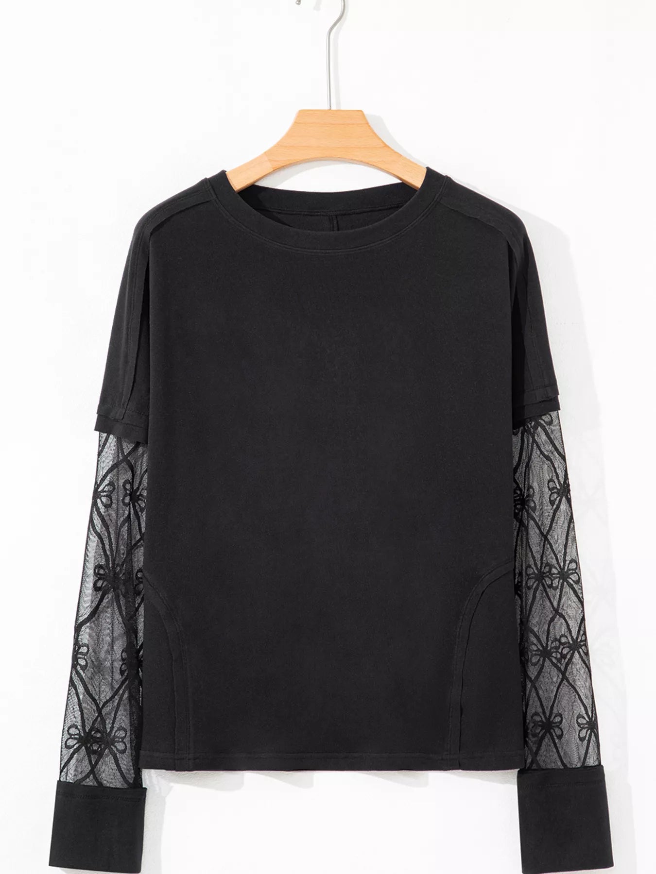 Solid Color Bow Textured Patchwork Long Sleeve Top