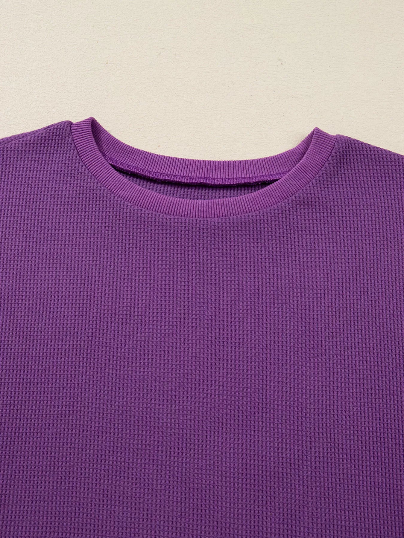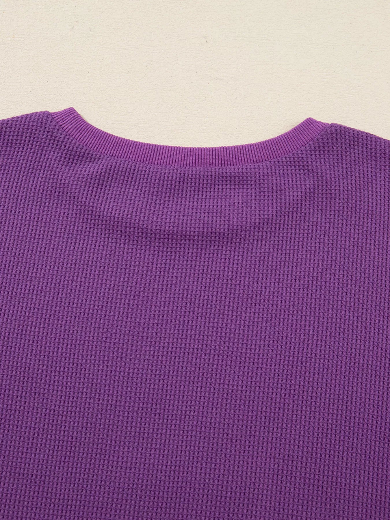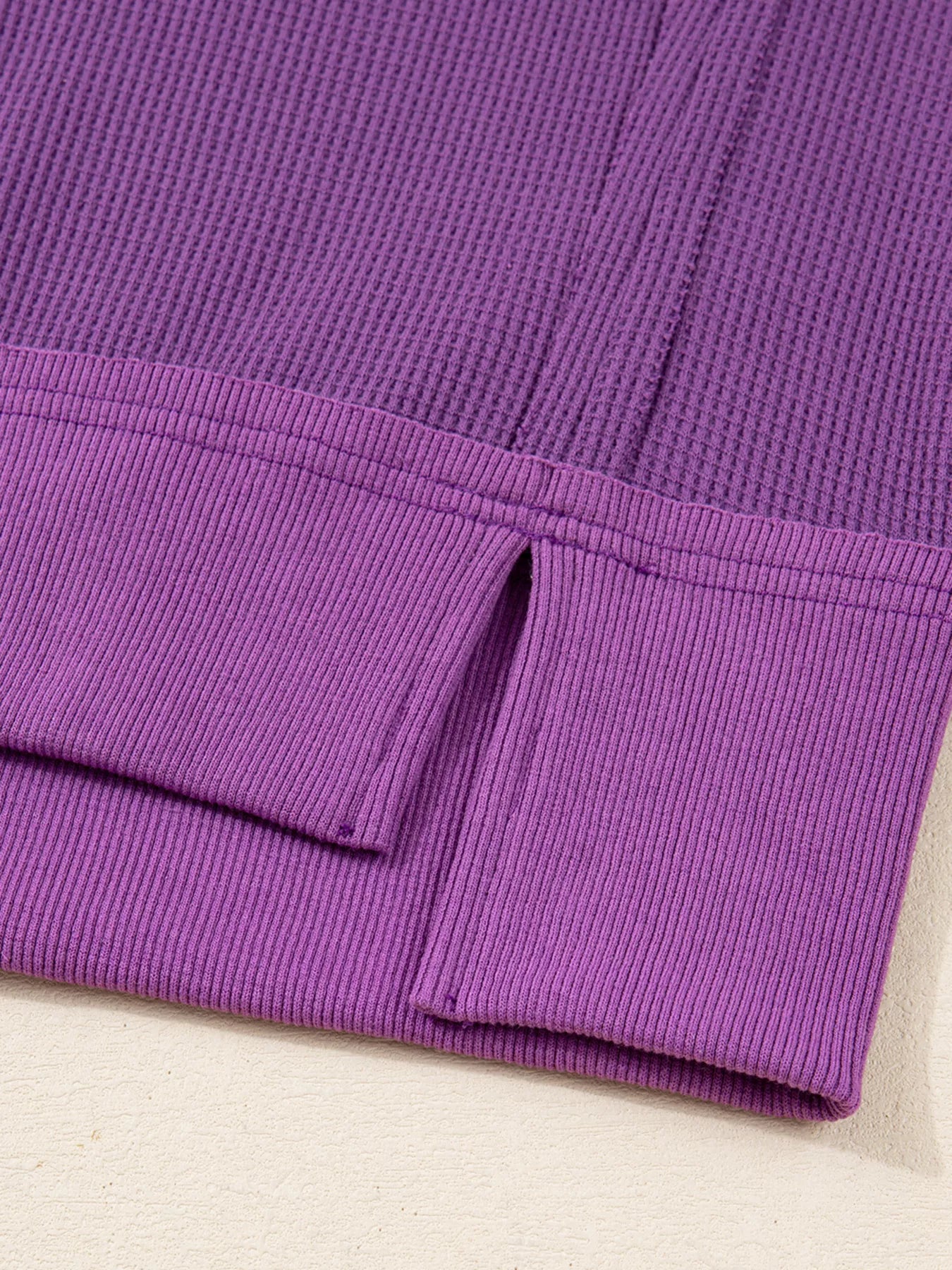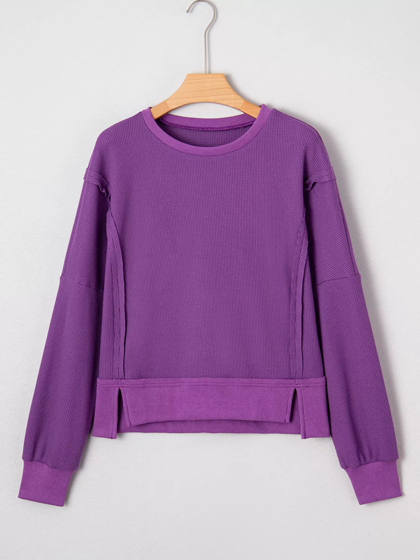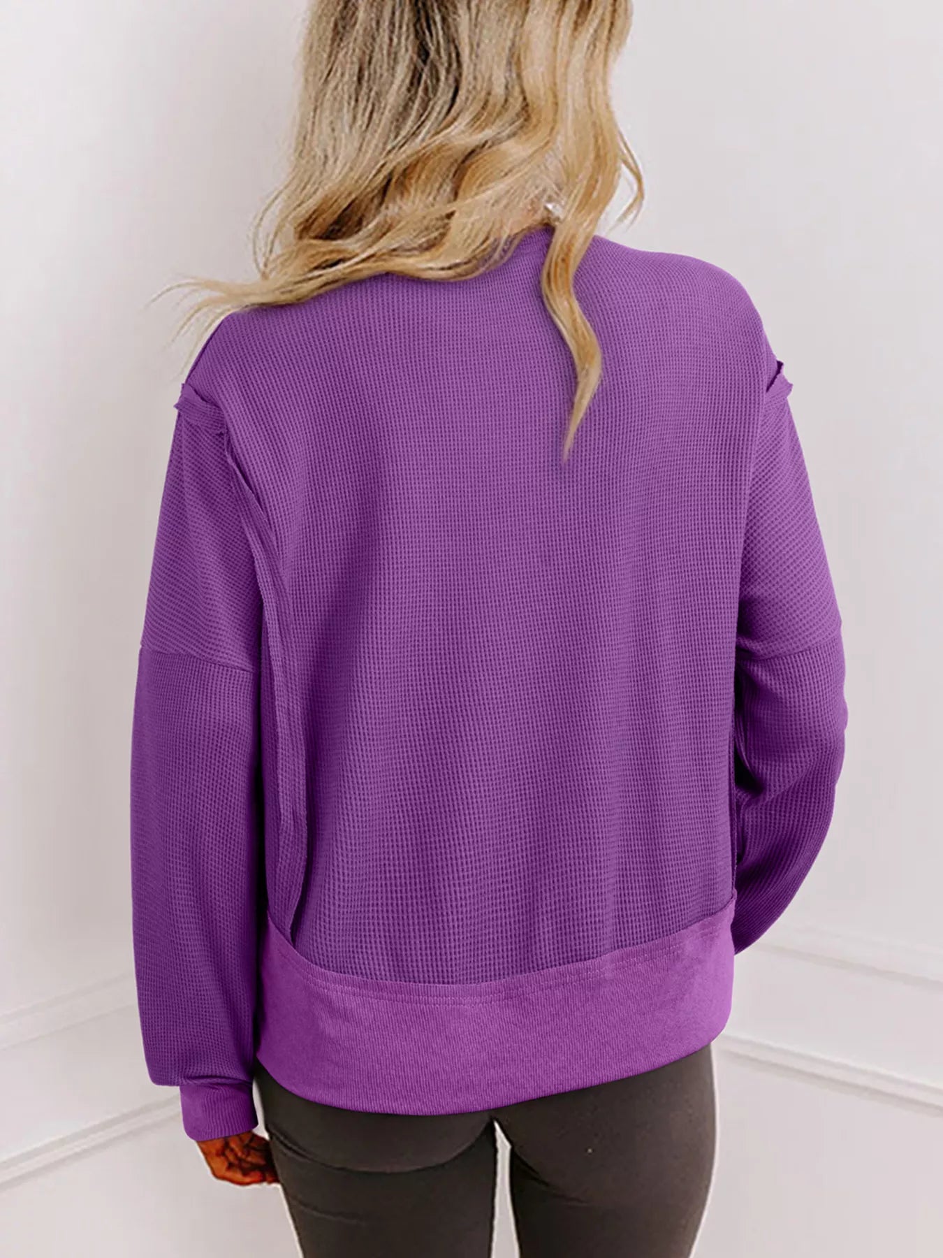 Solid Color Raw Seam Patchwork Ribbed Drop Shoulder Sweatshirt