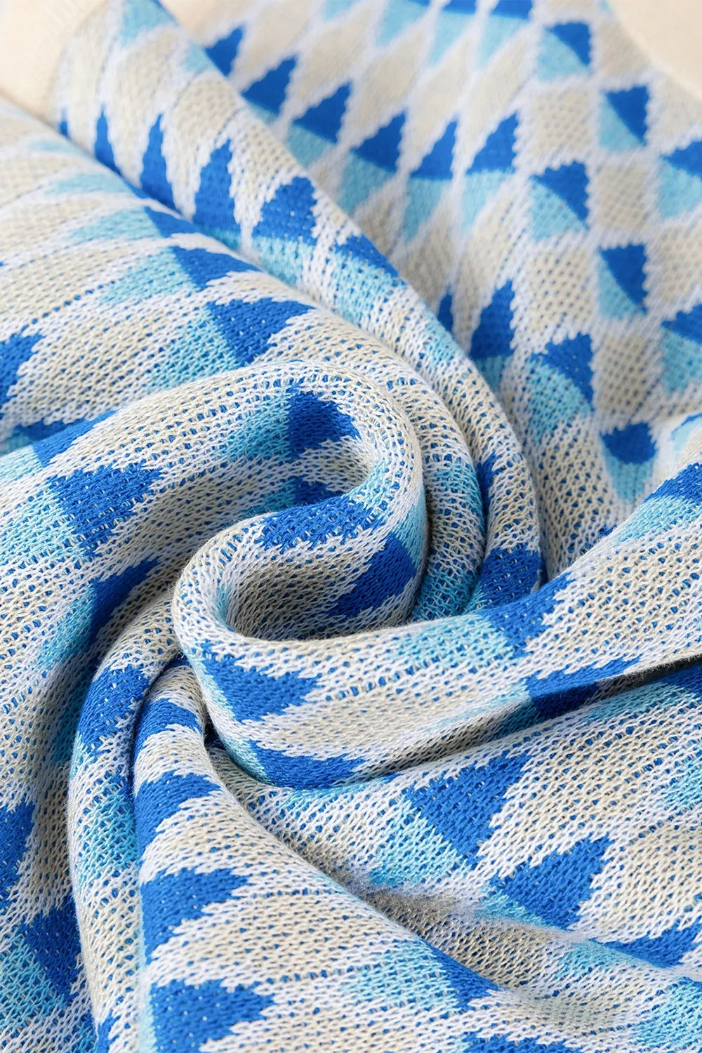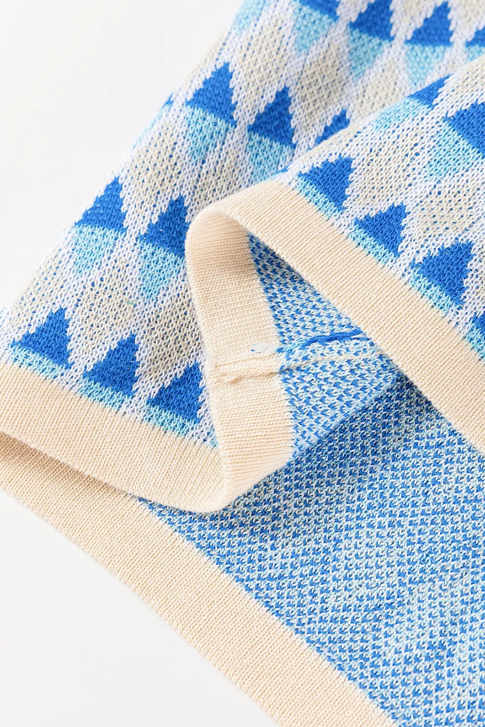 Stripe Geometric Print Round Neck Slim Fit Sweater Vest