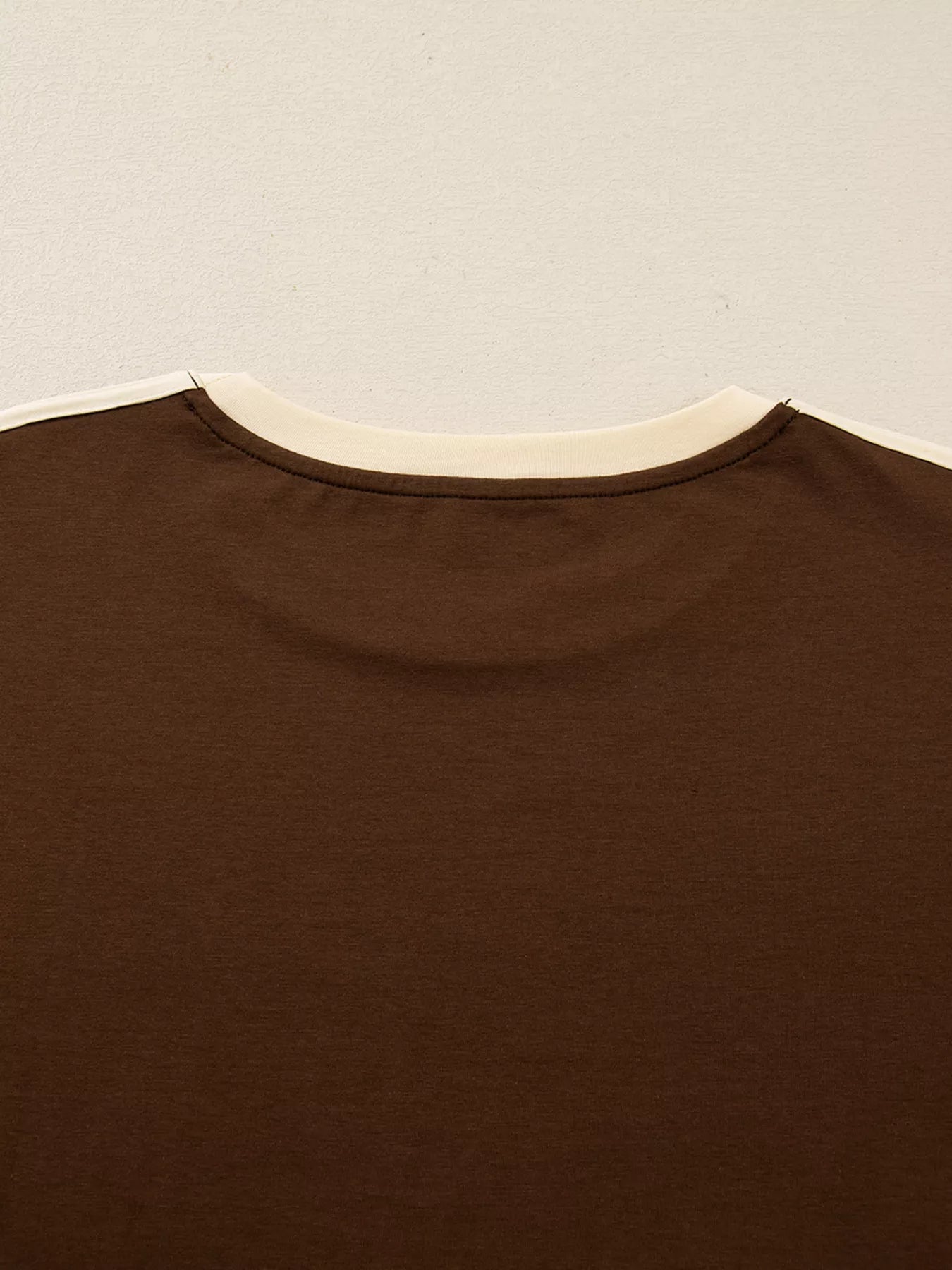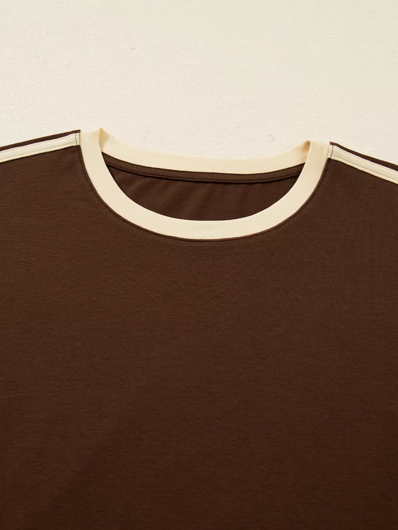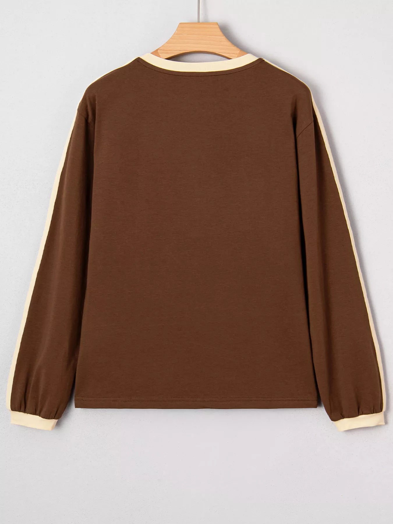 Striped Accent Contrast Crew Neck Long Sleeve T Shirt