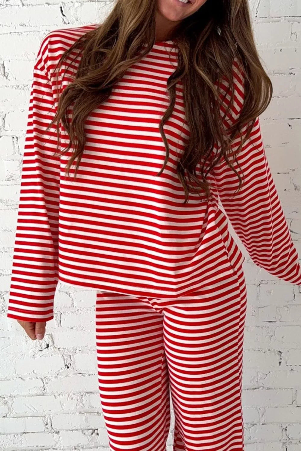 Striped Round Neck Top and Pants Set