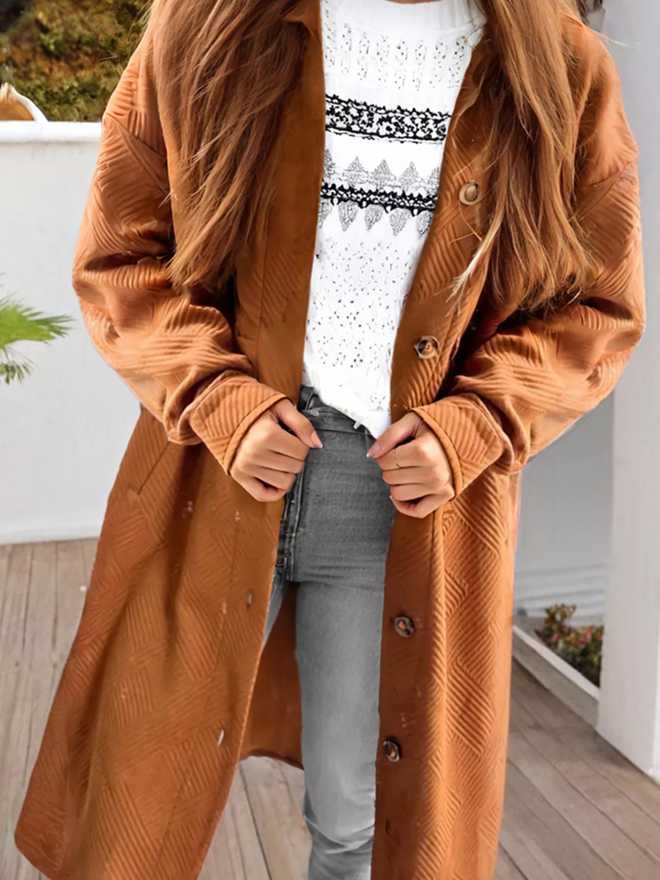 Textured Collared Drop Shoulder Buttoned Front Coat