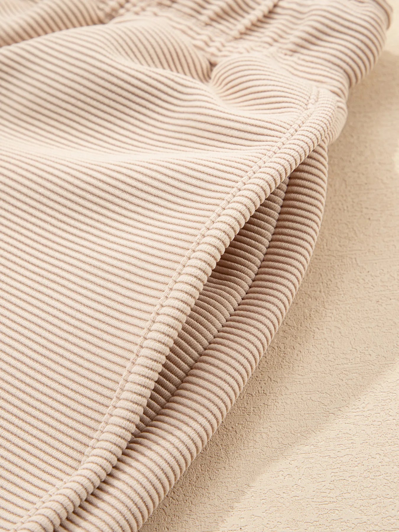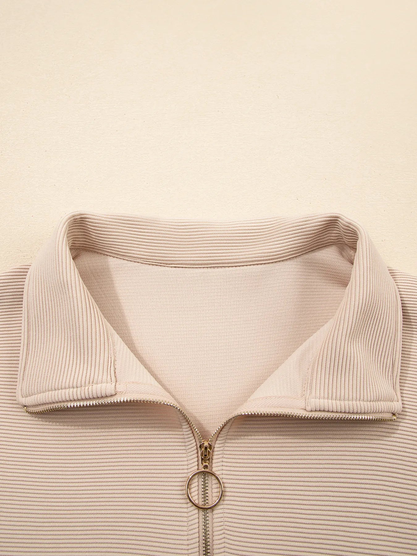 Textured Half Zip Kangaroo Pocket Top and Drawstring Shorts Set