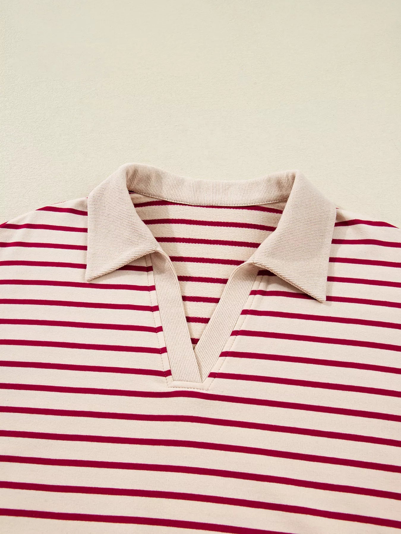 tripe Cropped Collared Drop Shoulder Pullover and Bubble Mini Skirt Set