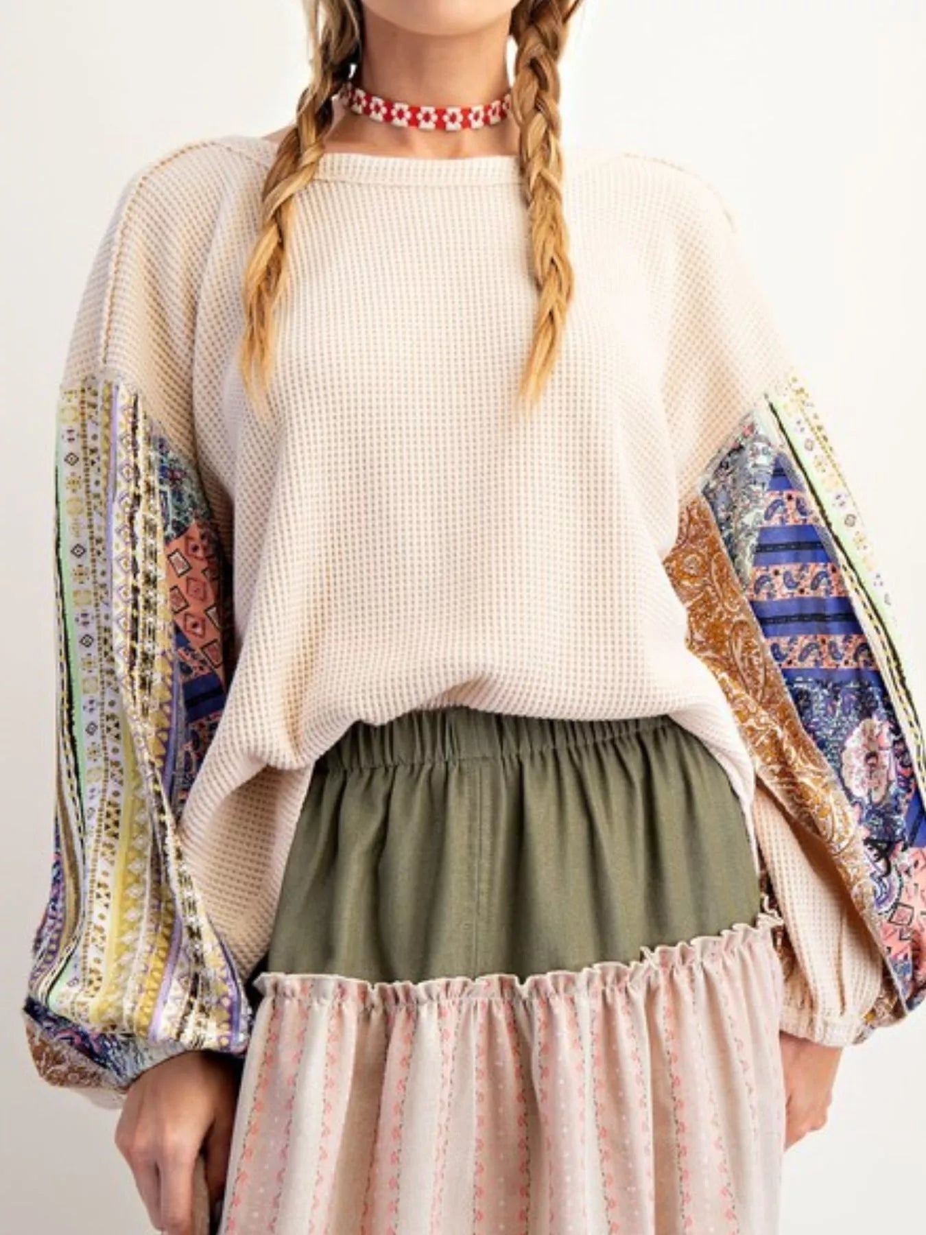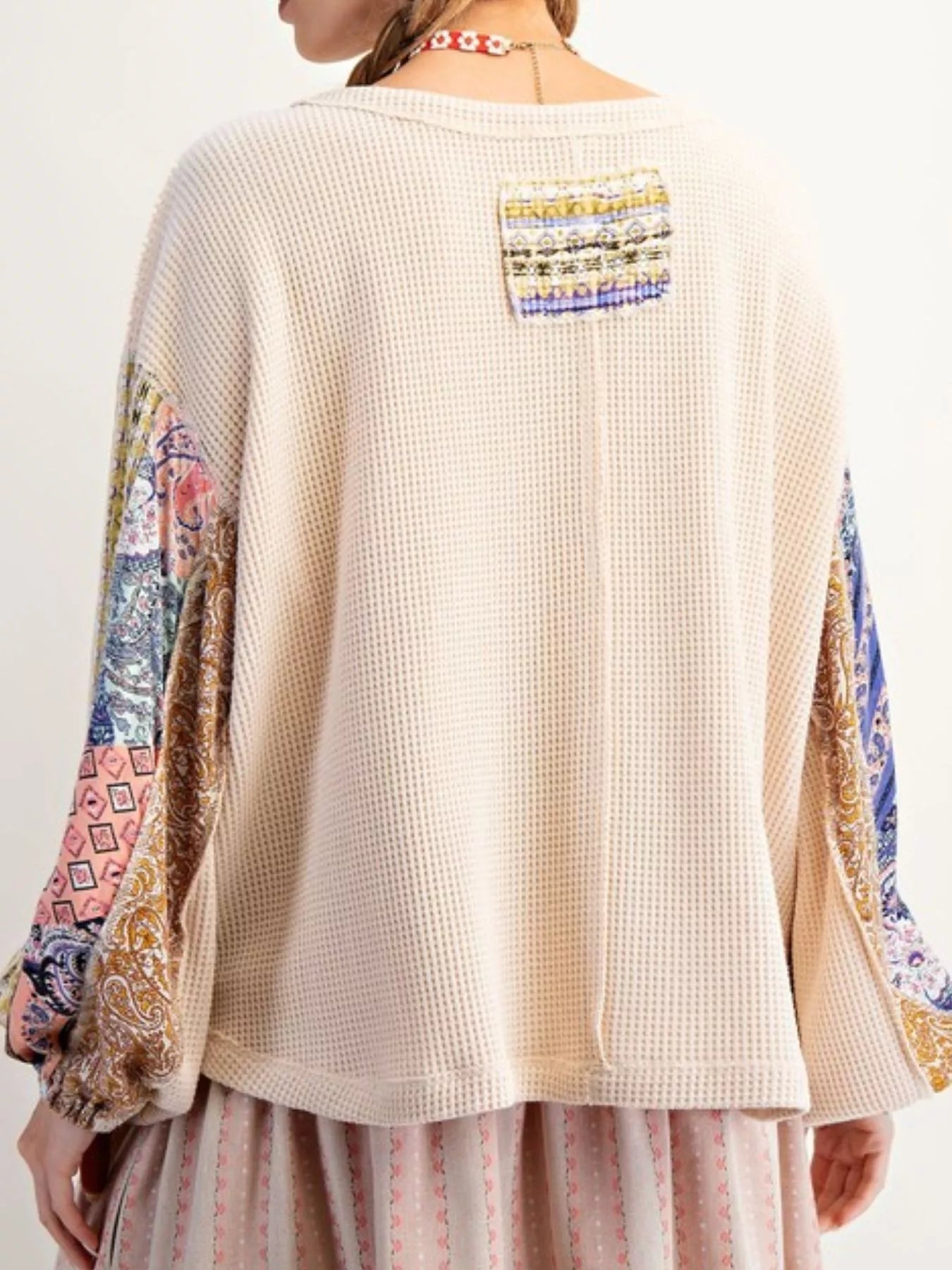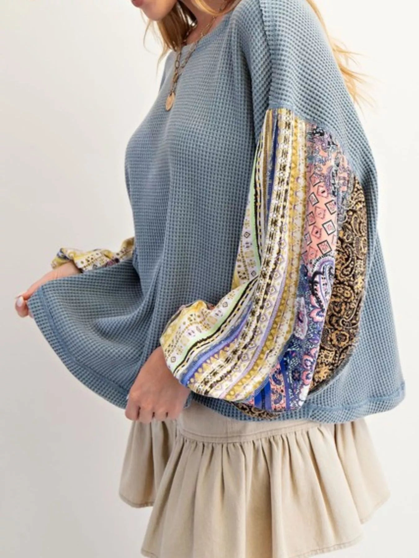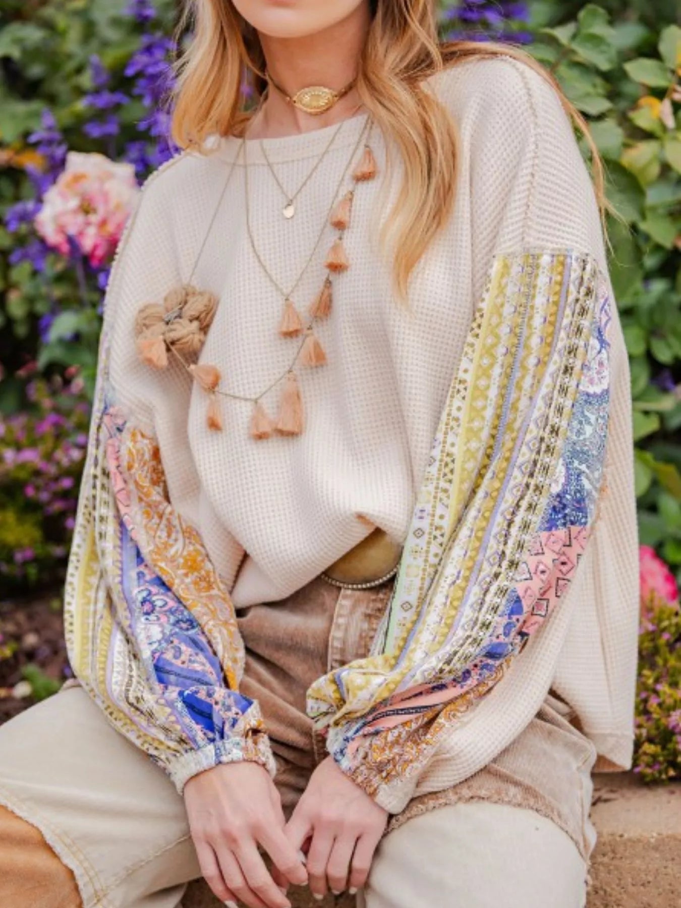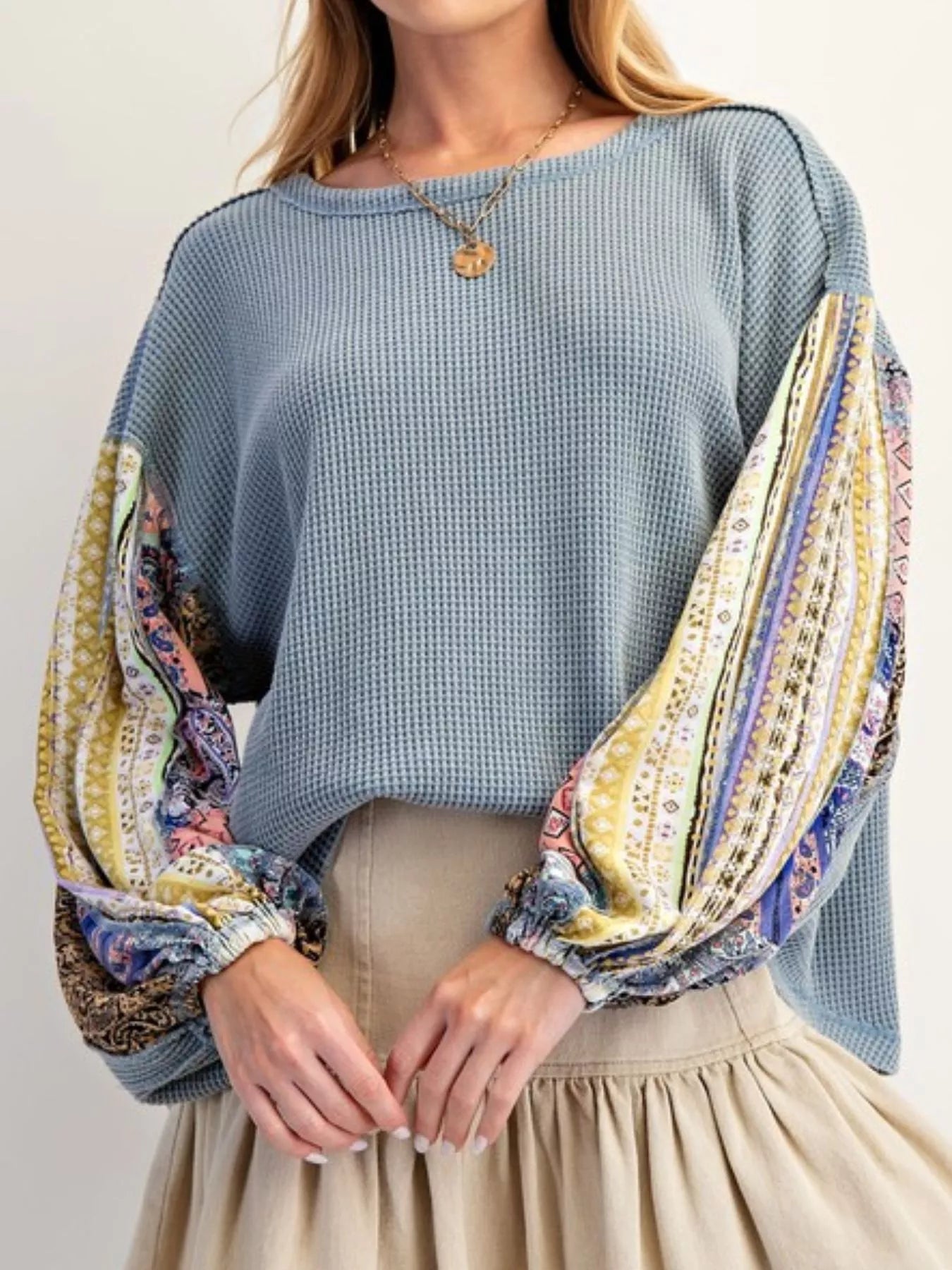 Waffle Knit Round Neck Dropped Shoulder Sweatshirt