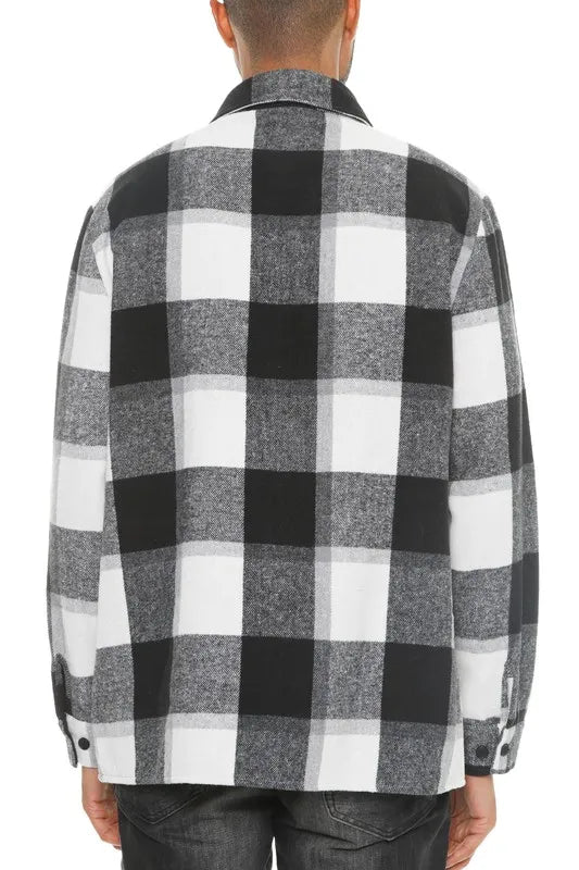 WEIV Men's Full Size Button Down Checkered Flannel Shacket Plus Size