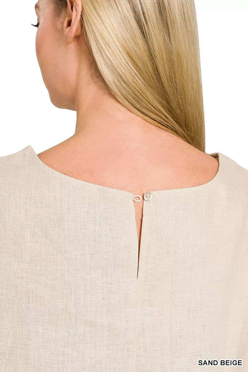 Zenana Linen Round Neck Cap Sleeve Top