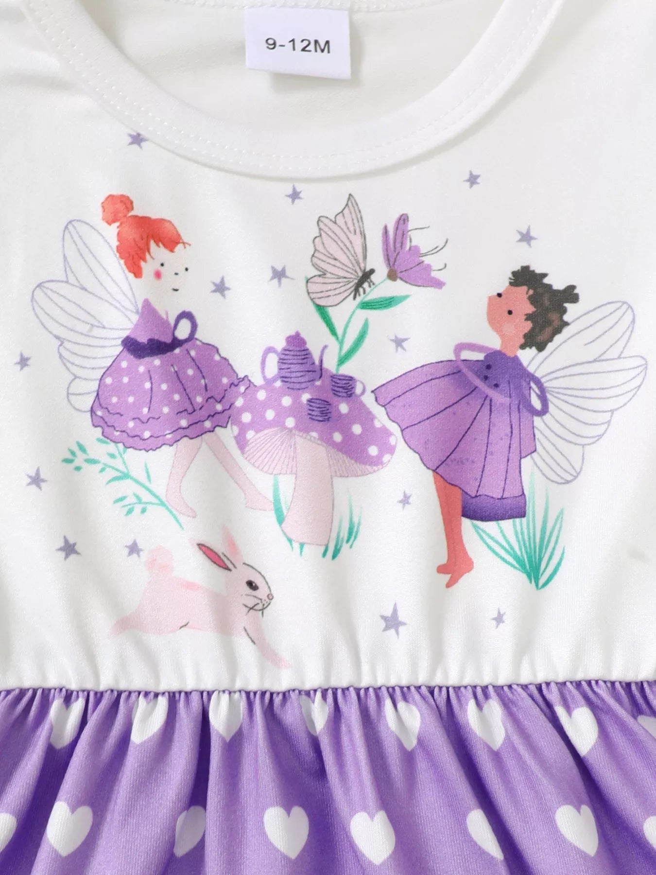 3-Piece Children's Printed Ruffle Sleeve Baby Dress