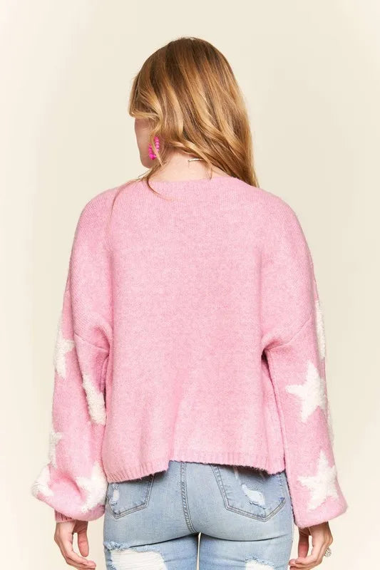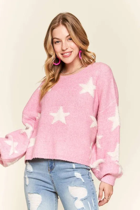 A star contrast round neck sweater is a stylish and eye-catching piece that features star designs as a contrast on the sweater. This type of sweater typically has a round neckline, providing a classic and flattering look. The star contrast adds a fun and playful element to the sweater, making it a great option for expressing your unique style. You can pair this sweater with jeans or leggings for a casual yet chic outfit, or dress it up with a skirt for a more dressed-up look. The star contrast round neck sweater is versatile and can be worn for various occasions, adding a touch of personality to your wardrobe.