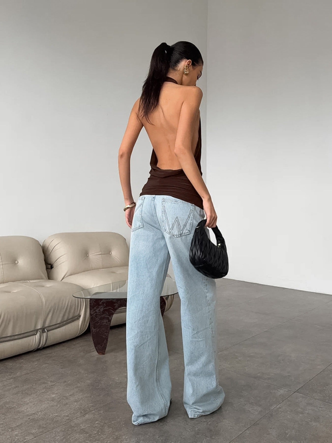 Backless Halter Cowl Neck Cami