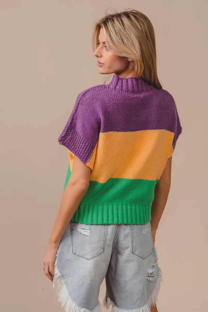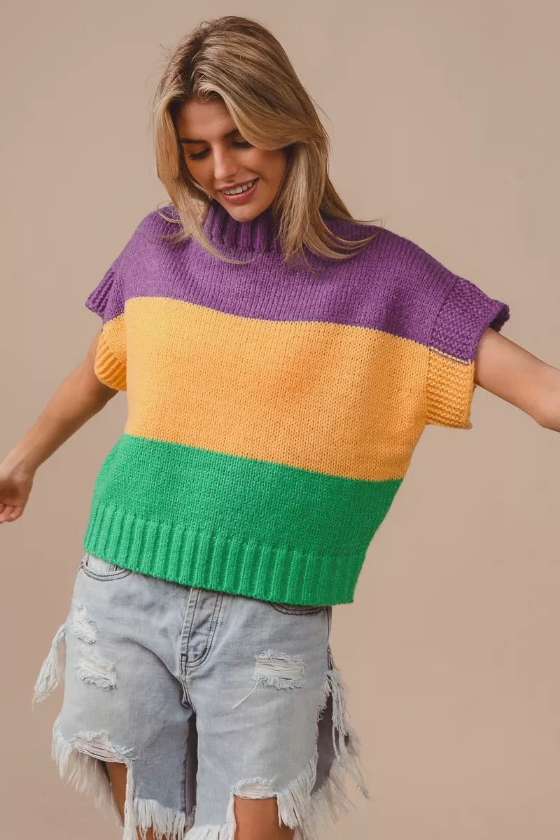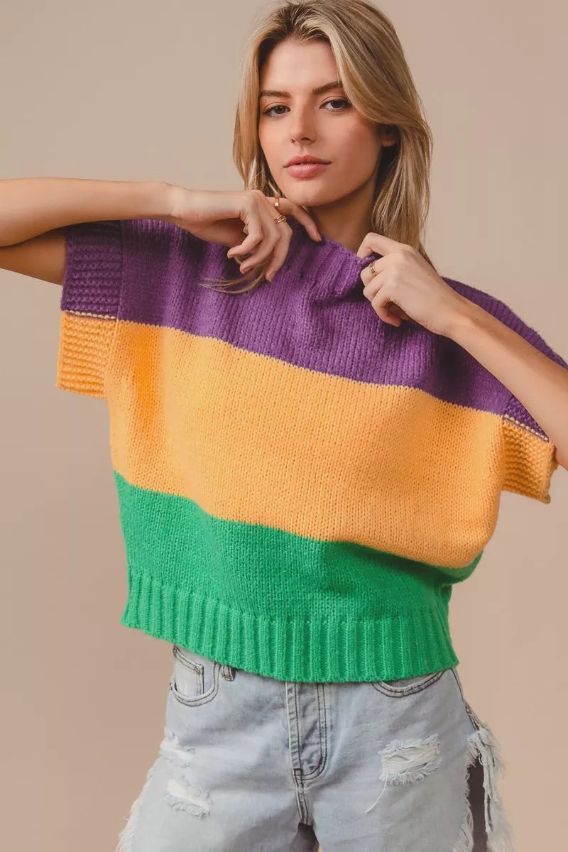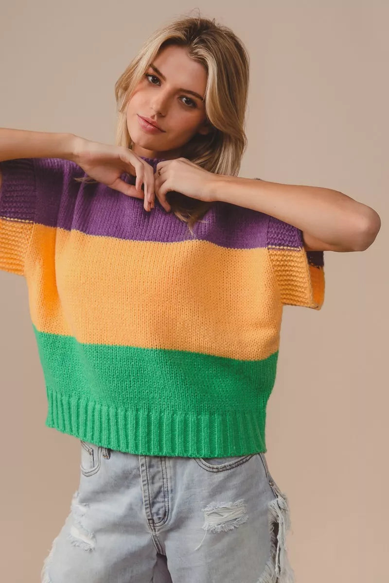 BiBi Mardi Gras Color Block Drop Shoulder Sweater Top