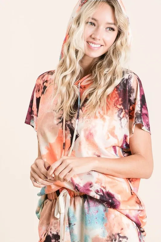 This Tie Dye Terry Hoodie with Drawstring combines comfort and style in one trendy piece. The tie-dye print gives it a fun and playful look, while the terry fabric offers a soft and cozy feel. The drawstring hood adds a touch of practicality and adjustability. Perfect for a casual and laid-back outfit, pair this hoodie with your favorite jeans or leggings for a relaxed yet fashionable ensemble.
