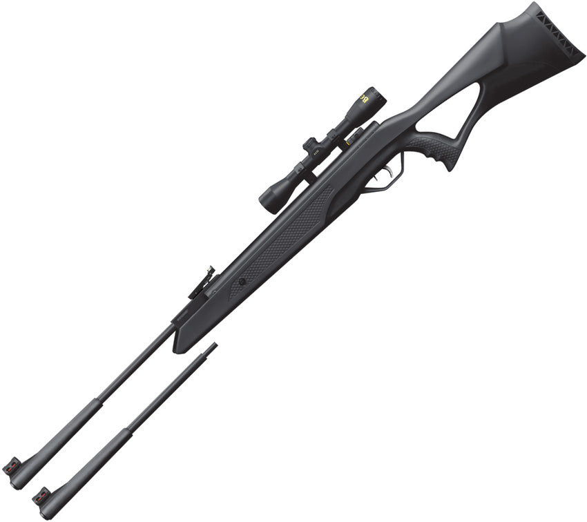 45.5" overall. Weight: 8.5lb. Velocity: 1200fps. Caliber: .177. Break barrel. Spring piston powered. Includes additional .22 caliber barrel. Fiber optic... Read more